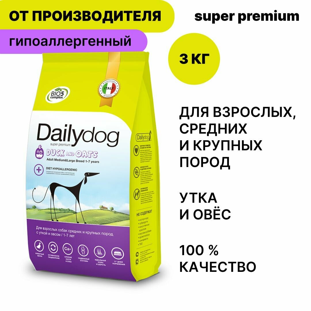 Купить Dailydog ADULT MEDIUM&LARGE BREED Duck and Oats Сухой корм для взрослых собак средних и крупных пород с уткой и овсом 3кг, 1 шт