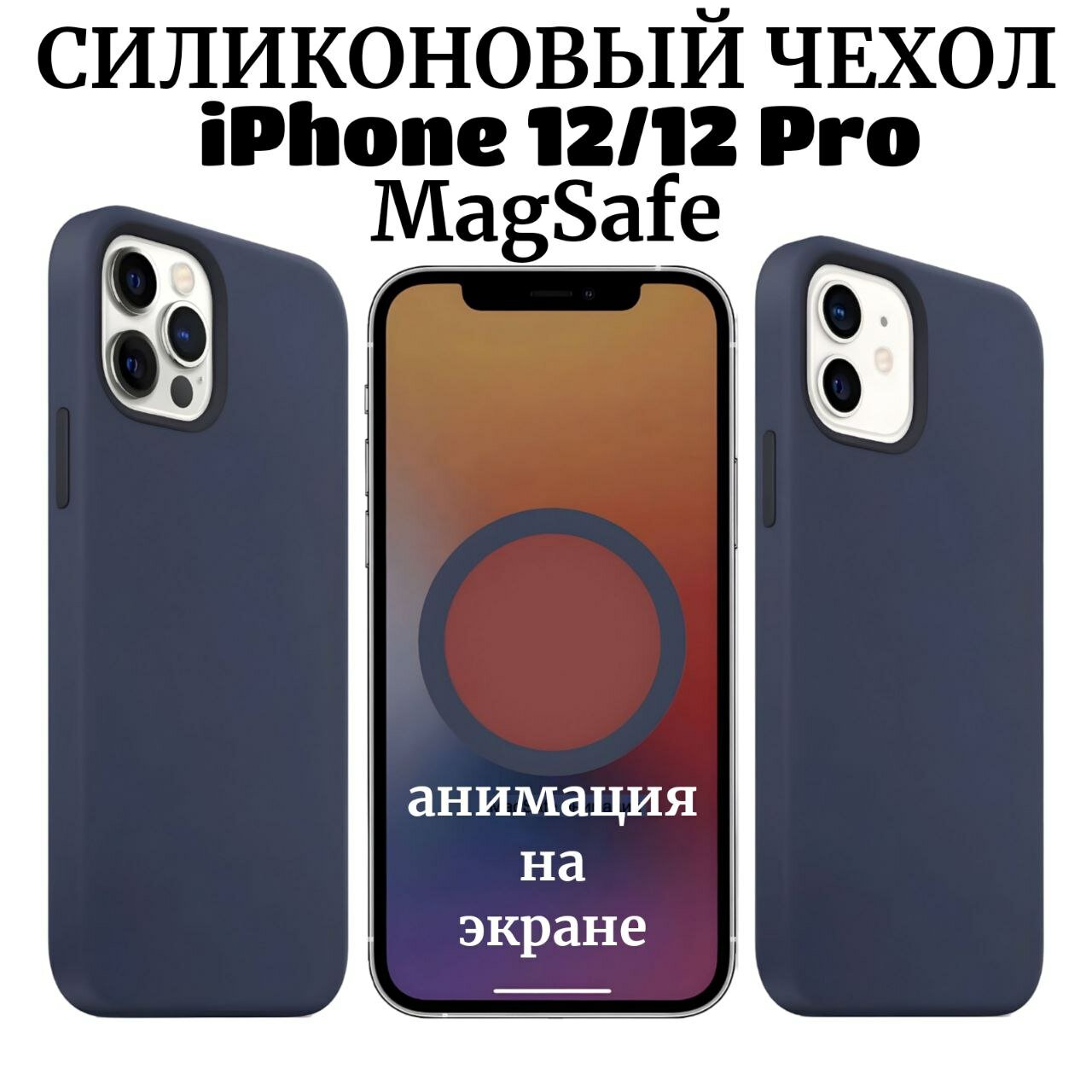 Купить Чехол на Айфон 12 / 12 Про силиконовый магсейф с Анимацией для iPhone 12 / 12 Pro Silicone Case MagSafe с защитой камеры и экрана цвет (Темно-синий)