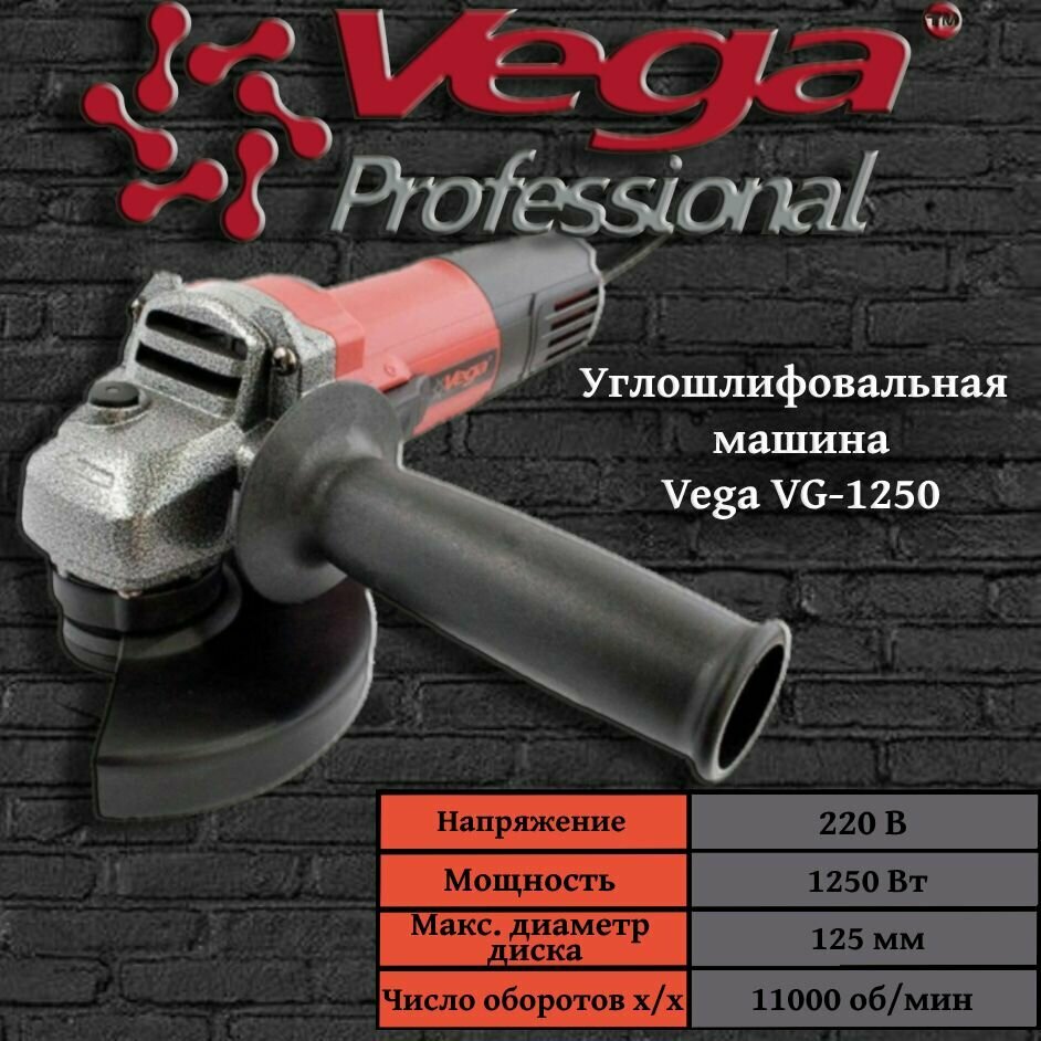 Углошлифовальная машина болгарка Vega Professional VG 1250, 125мм круг, 1250Вт, 11000об/мин