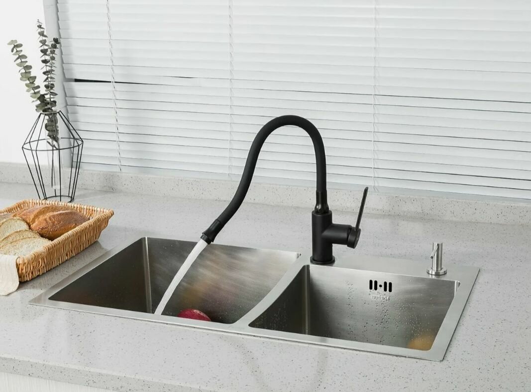 Смеситель для кухонной мойки-раковины с гибким силиконовым изливом Frap F4067-6 черный, латунь/силикон интересное: