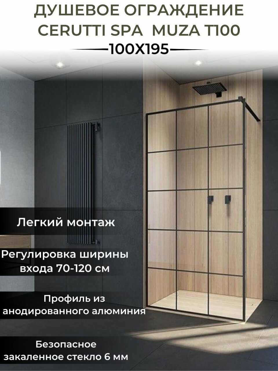 Купить Душевое ограждение Ceruttispa MUZA T100 (100х195), профиль черный, стекло прозрачное
