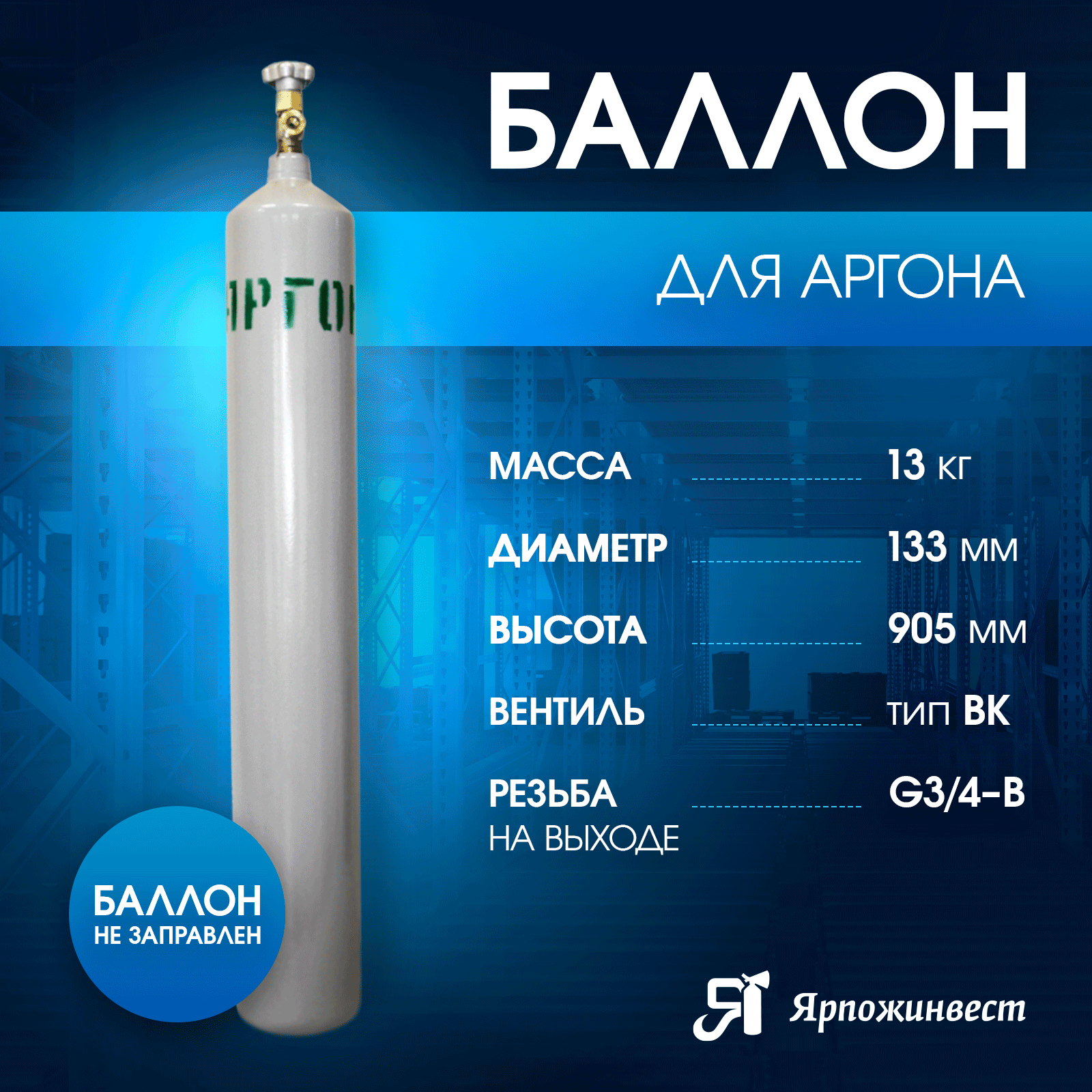 Баллон аргон 10л Ярпожинвест, бесшовный/ Пустой без газа интересное: