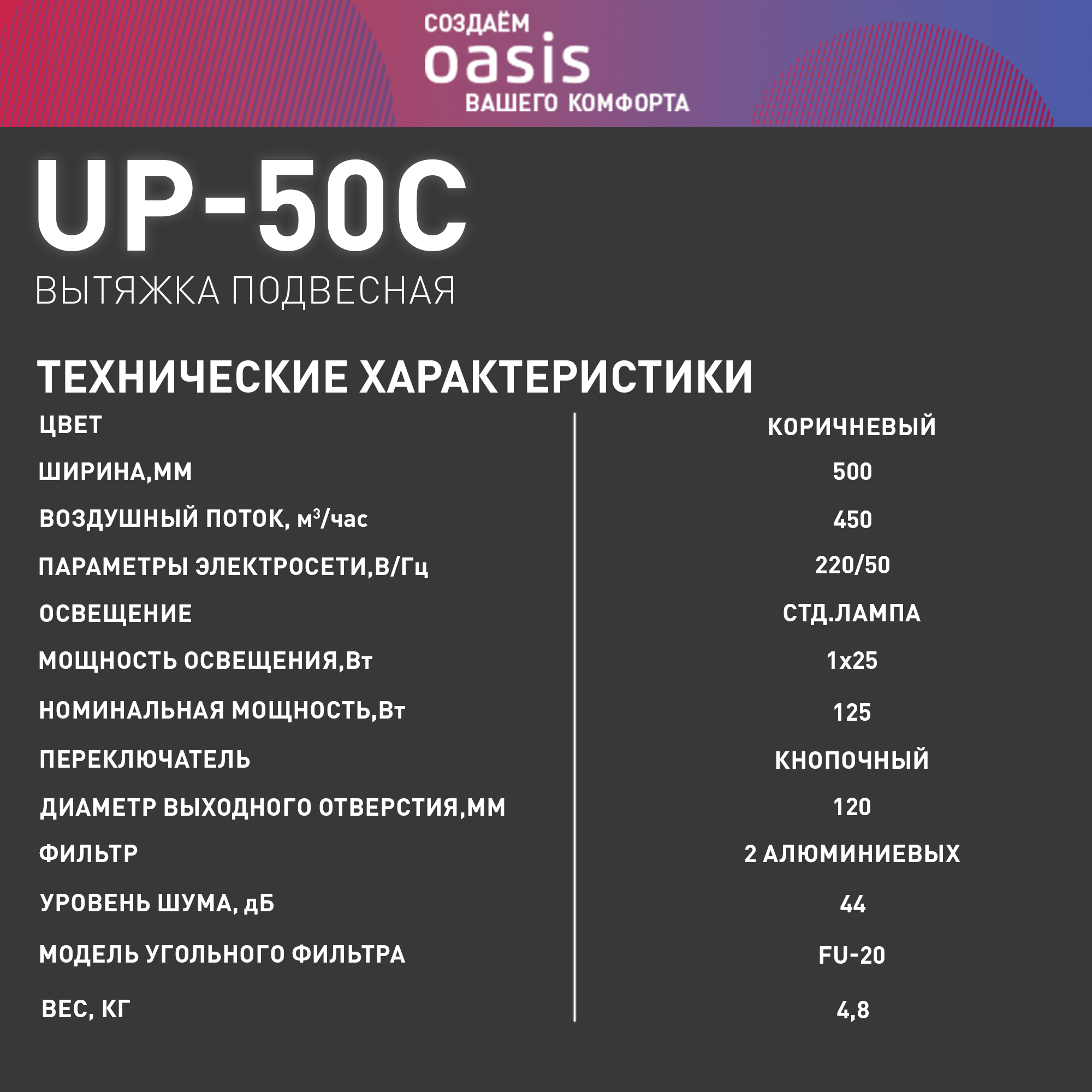Вытяжка (OASIS UP-50C коричневый)