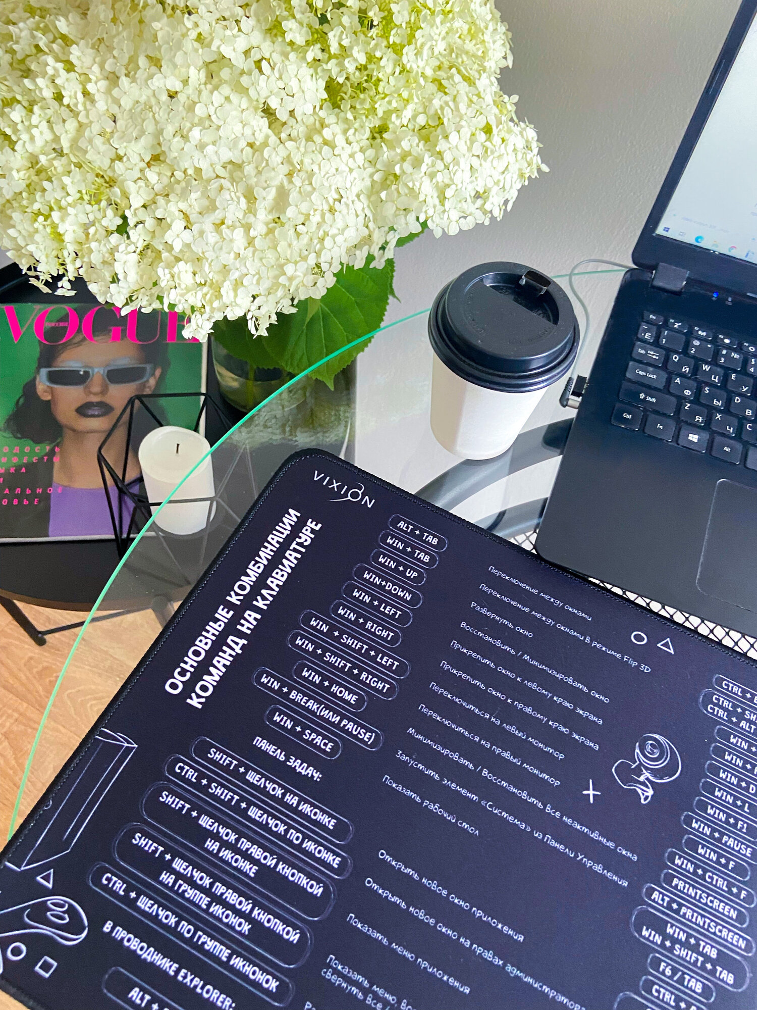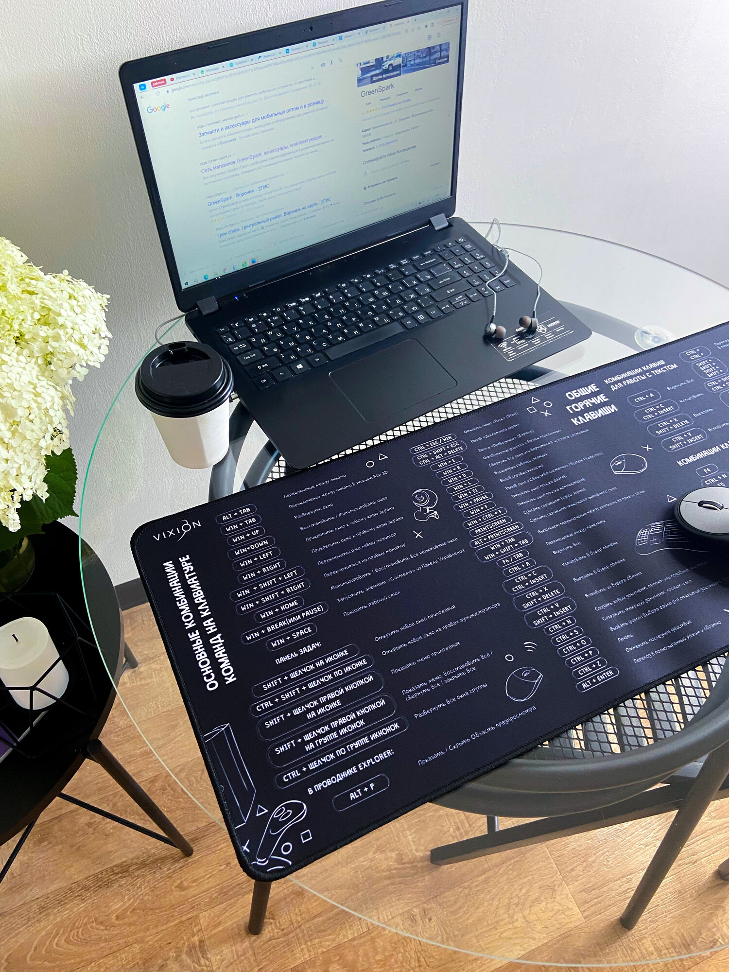 | Плюсы: | Достаточно большой, на всю рабочую область стола. Лежит плотно, не ерзает. Не маркий |