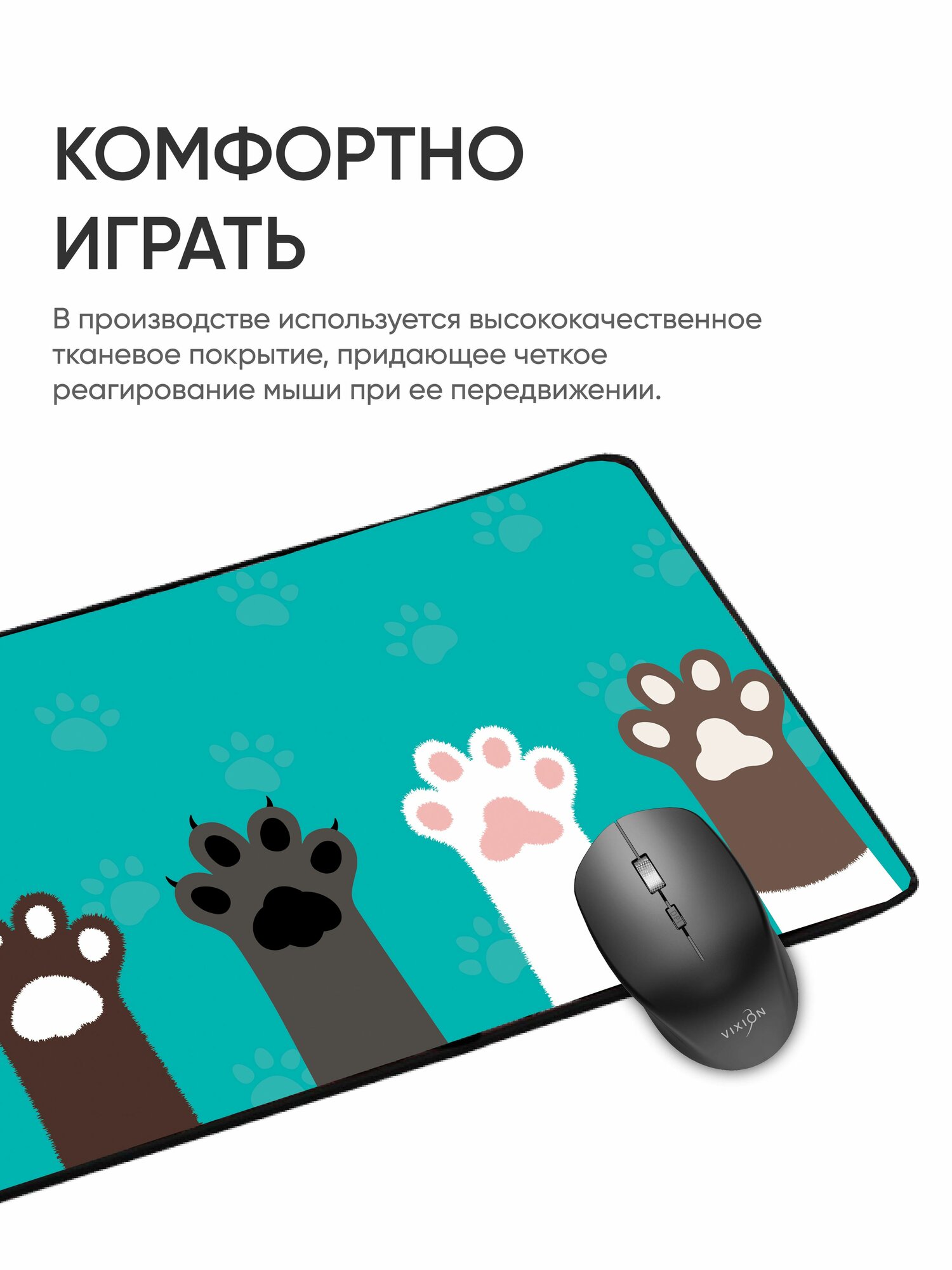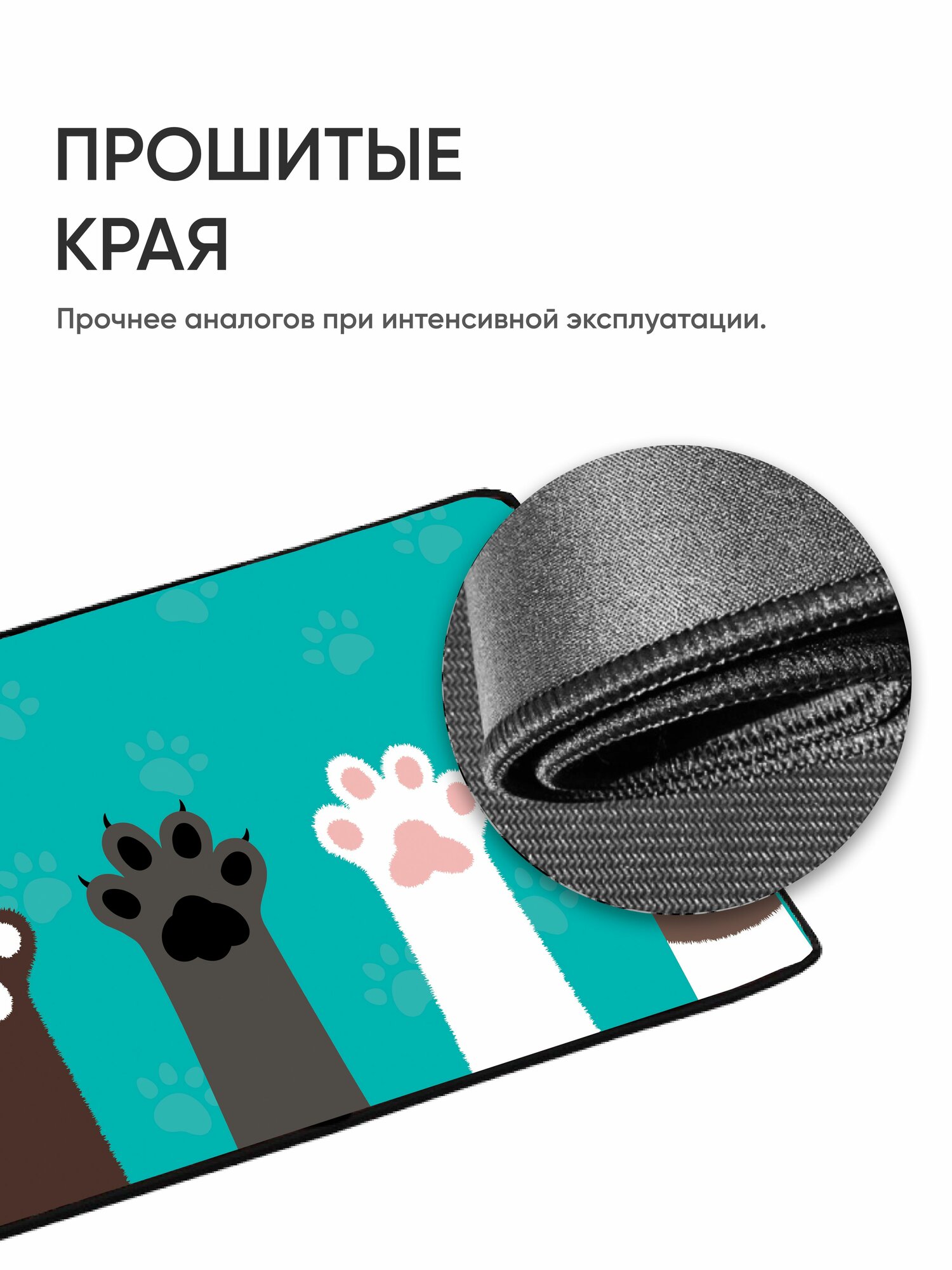 Купить Большой коврик для мышки 300x700x3 мм Лапки котят бирюзовый-белый