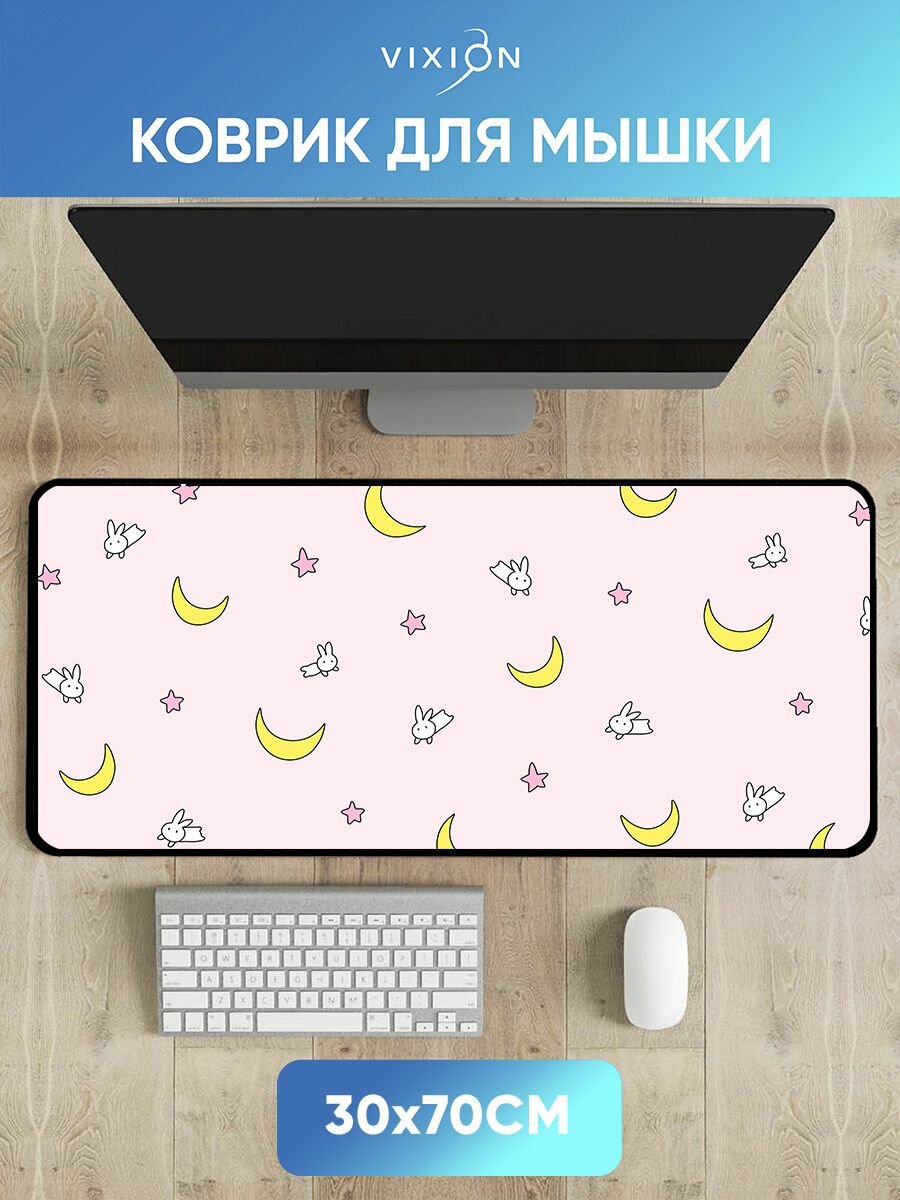 Купить Большой коврик для мышки 300x700x3 мм Зайчики и звезды розовый