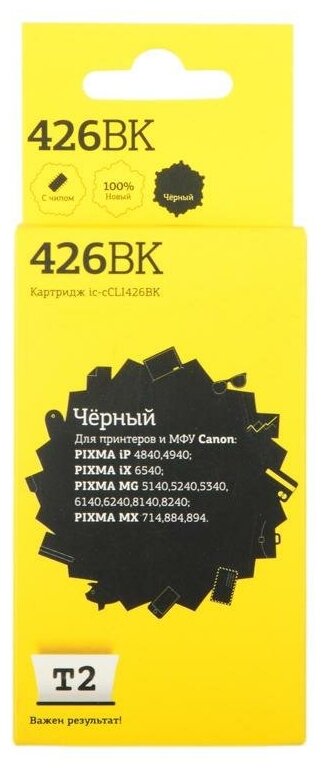 T2 Расходные материалы CLI-426BK Картридж IC-CLI-426-BK для Canon Pixma iP4840 iP4940 MG5140 MG5240 черный с чипом