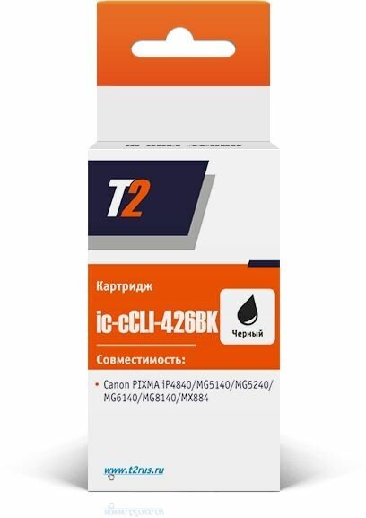 T2 Расходные материалы CLI-426BK Картридж IC-CLI-426-BK для Canon Pixma iP4840 MG5140 MG6140 MG8140 MX884 черный с чипом
