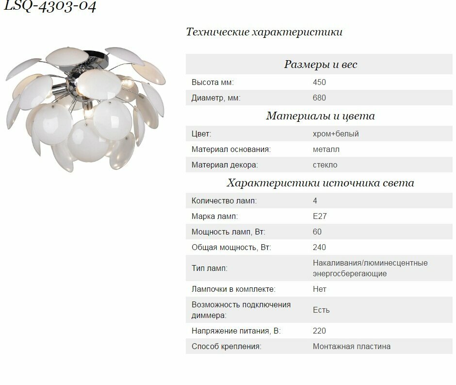 Люстра Lussole Mattina LSQ-4303-04 интересное: