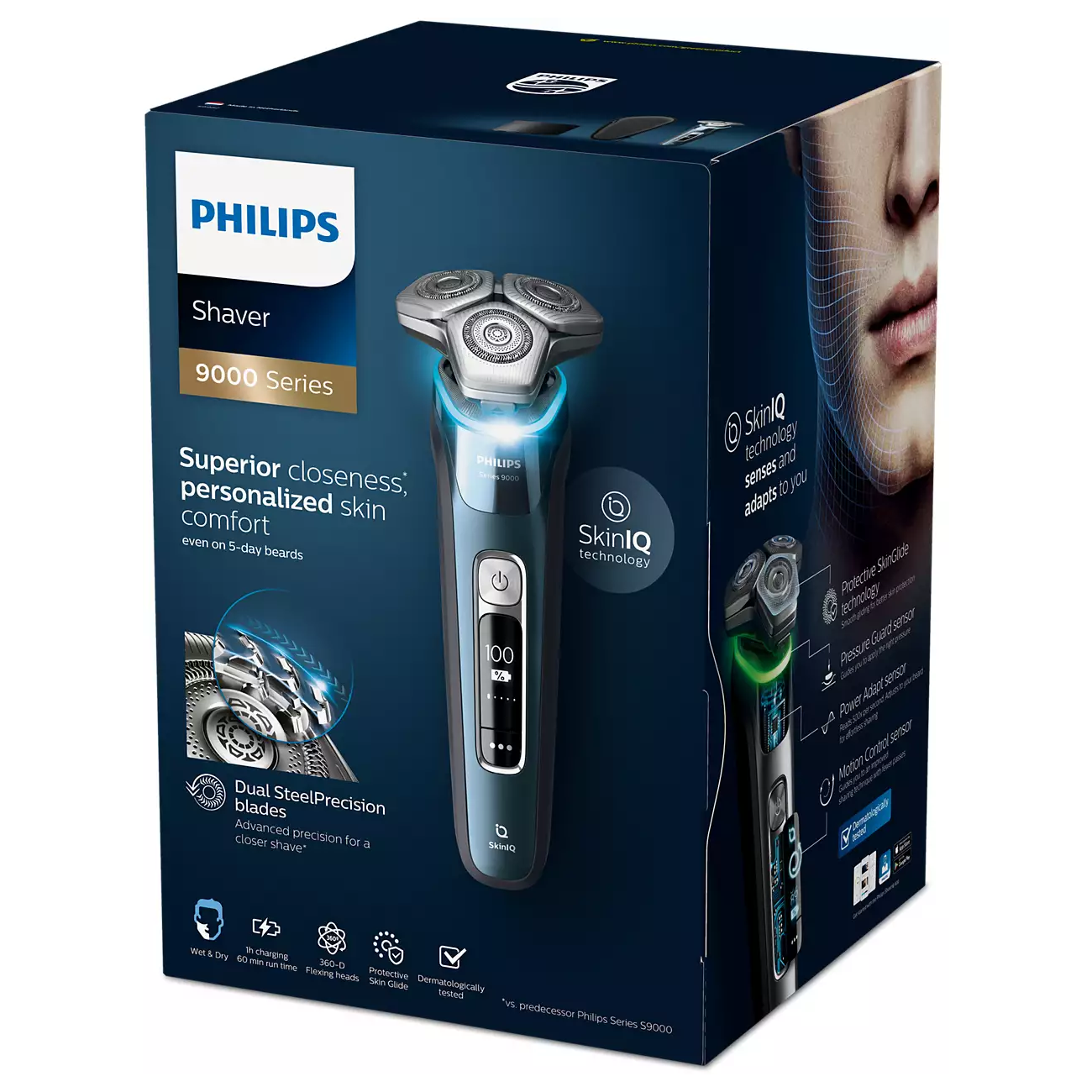 | Дополнительная информация | программное обеспечение: приложение GroomTribe, подключение через Bluetooth®, совместимость с iPhone и Android™; улучшенный OLED-дисплей; рекомендации по силе давления; индикатор управления движением; лезвия Dual SteelPrecision; подвижные головки 360-D; технология SkinIQ; защитное покрытие SkinGlide |