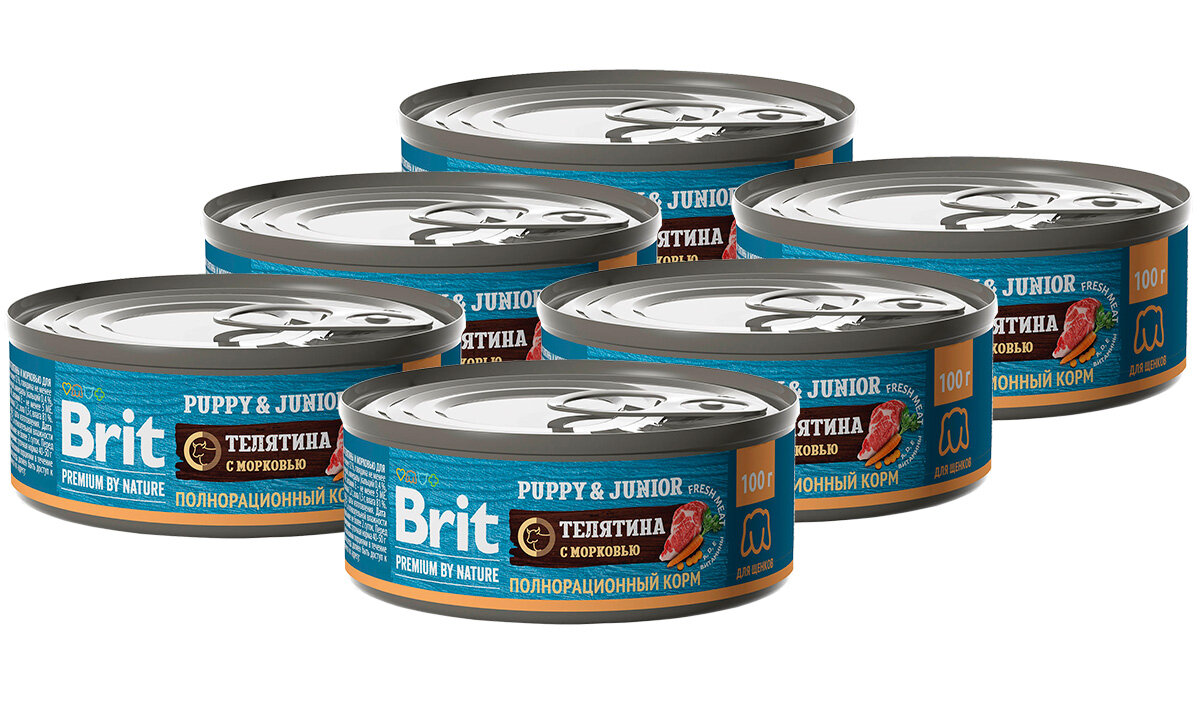 Brit Premium by Nature Корм консервированный с телятиной и морковью для щенков всех пород, 100гр, 6 штук