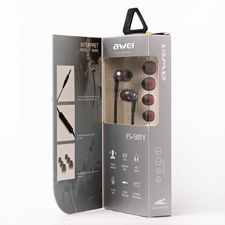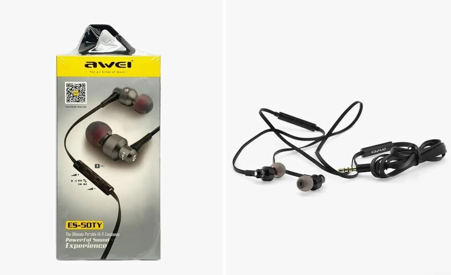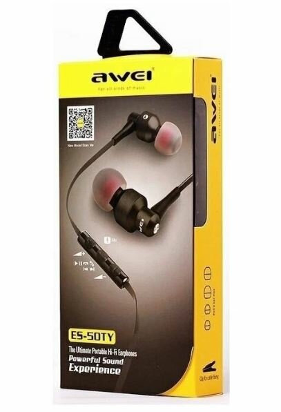 Купить Наушники проводные AWEI ES-50TY, Hi-Fi Powerful Sound Experience, Черный