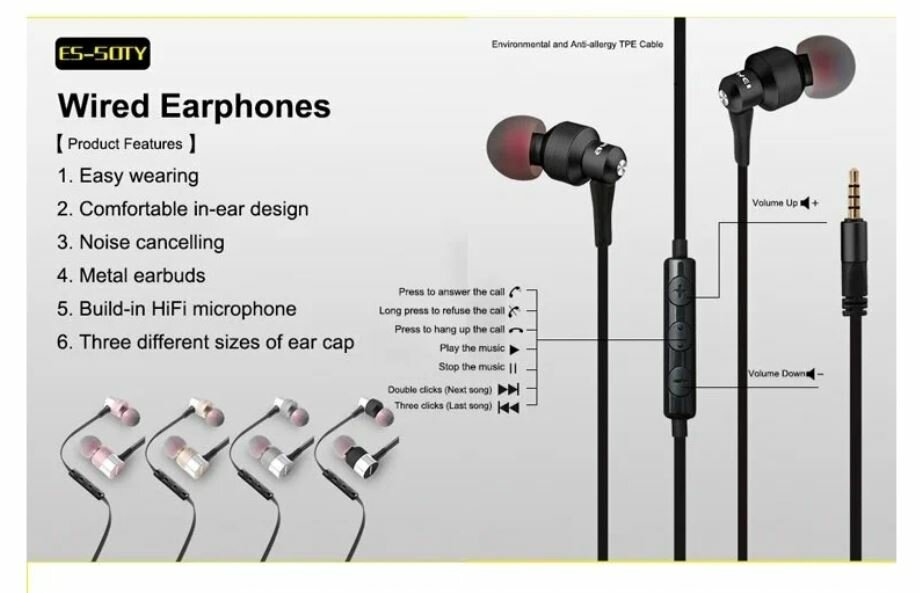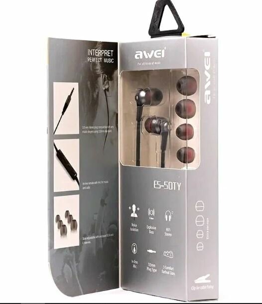 Наушники проводные AWEI ES-50TY, Hi-Fi Powerful Sound Experience, Черный интересное: