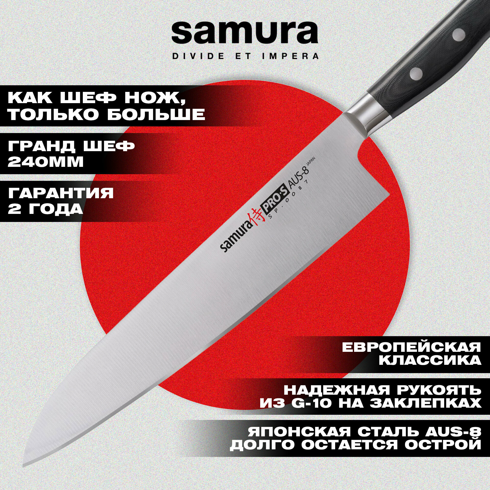 Нож кухонный Гранд Шеф Samura Pro-S, 240 мм (SP-0087/K) интересное:
