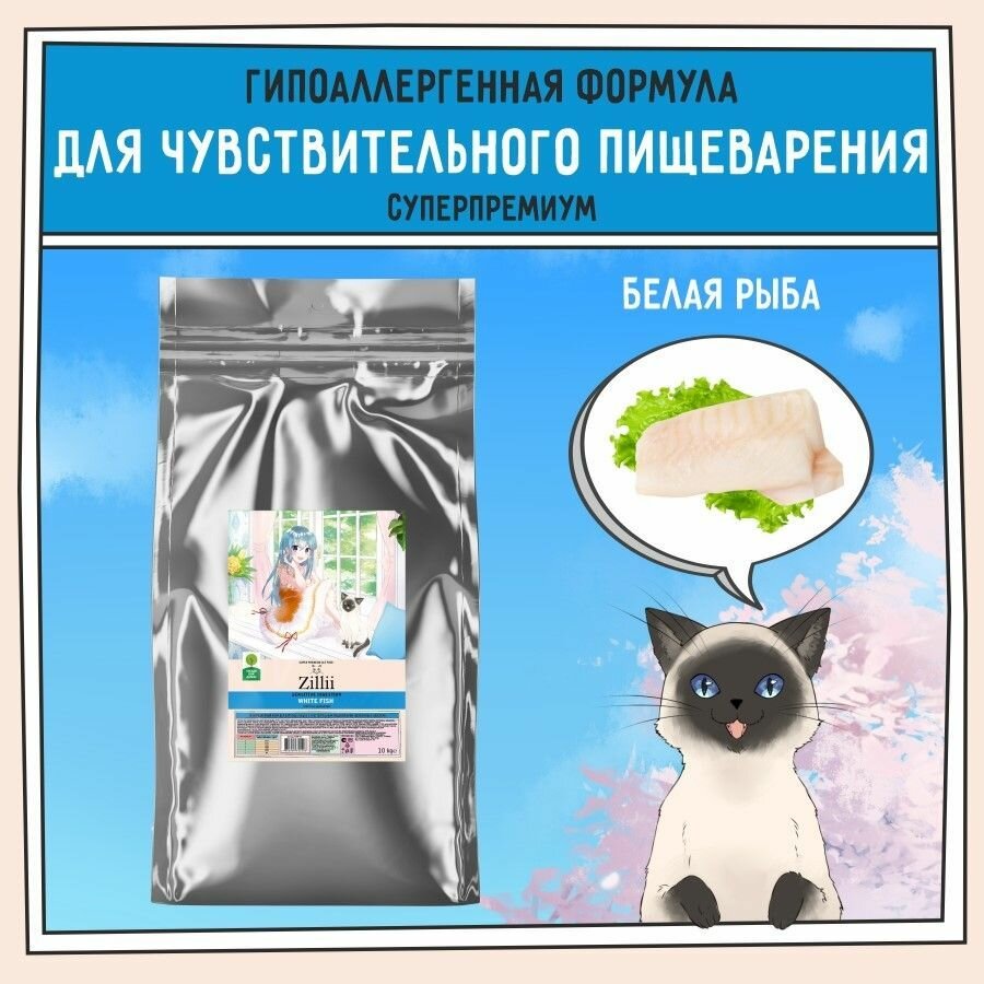 Купить ZILLII Sensitive Digestion Cat Сухой корм для кошек с чувствительным пищеварением, Белая Рыба 10кг