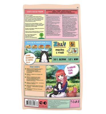 Сухой корм для кошек стерилизованных и с избыточным весом 400 г, гипоаллергенный ZILLII (Зилли), Индейка с Уткой