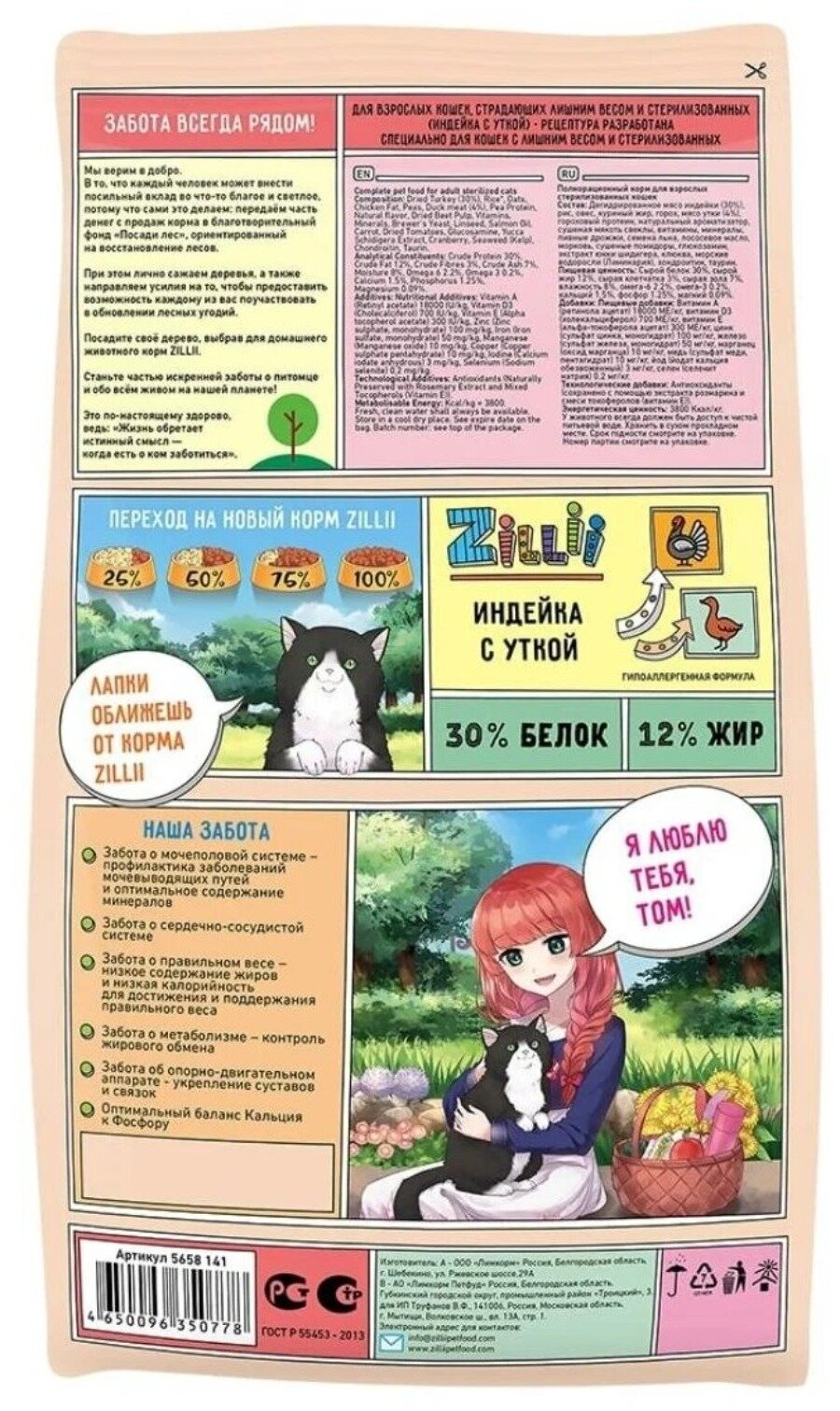ZILLII 5658130/350877 Light/Sterilized Cat Сухой корм д/взрослых кошек с избыточным весом и стерилиз