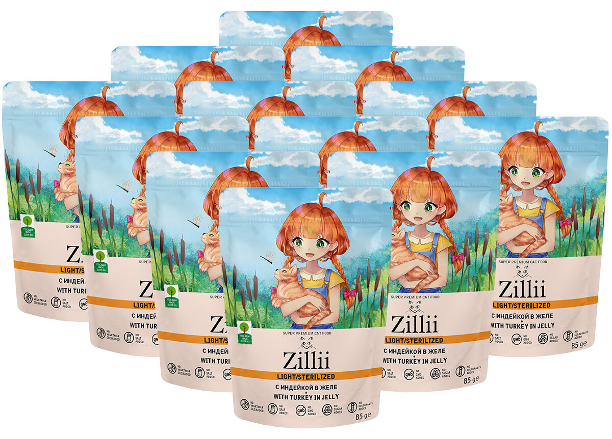 Купить Корм для кошек стерилизованных влажный ZILLII (Зилли) Sterilized/Light (пауч) 12шт - 85г, Индейка в желе