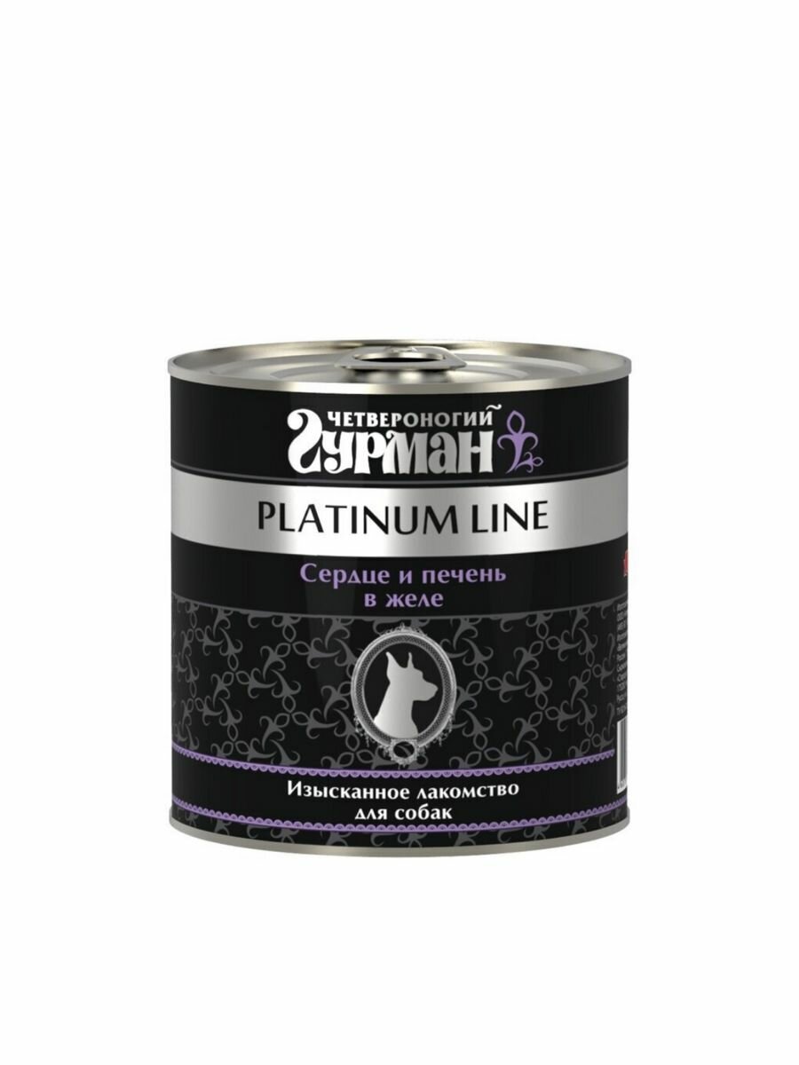 Четвероногий Гурман Platinum line консервированный корм с сердцем и печенью в желе для взрослых собак всех пород - 240 г (12 шт)