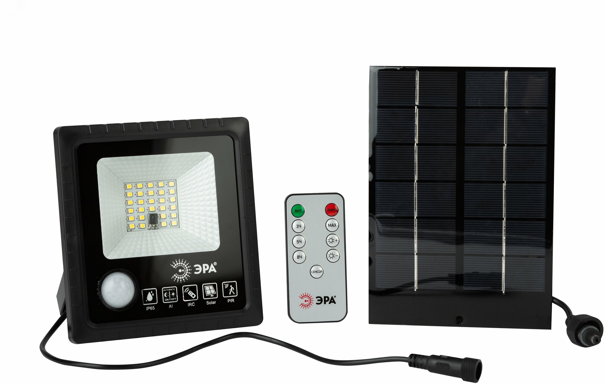 Прожектор светодиод на солнечной батарее СДО 20Вт 5000К 350Лм черный c датчиком движения ПДУ IP65 ERAPRO-20 ЭРА