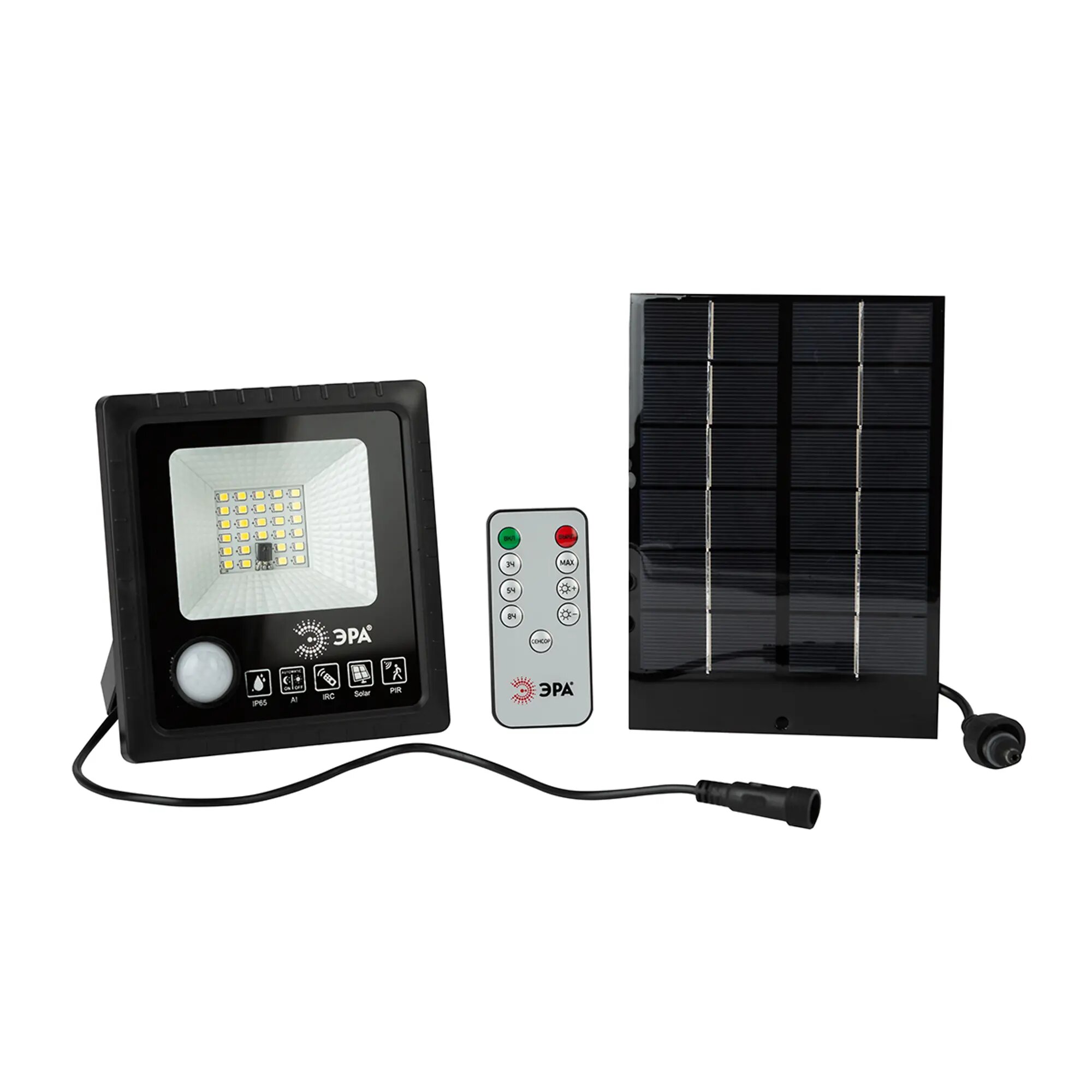 Прожектор светодиодный ПДУ ERAPRO-20 уличный с датчиком движения солнечная батарея 20Вт 350лм 5000К Б0049545 Эра