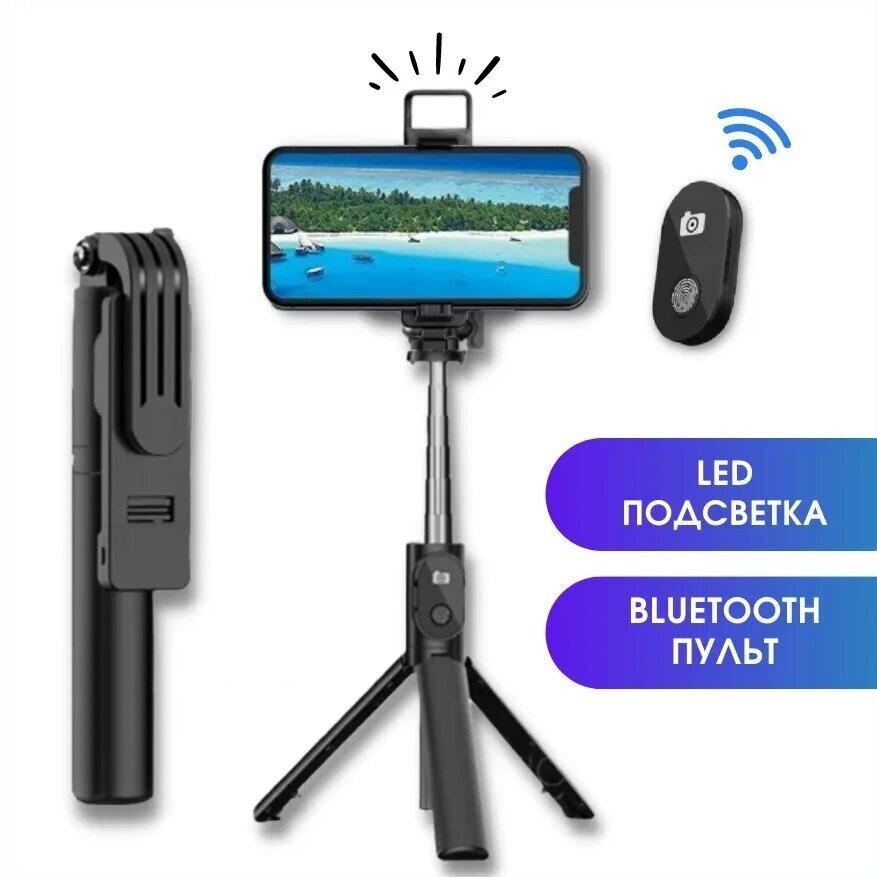 Монопод-трипод с блютуз пультом 1LED P20S-1 с подсветкой черный интересное: