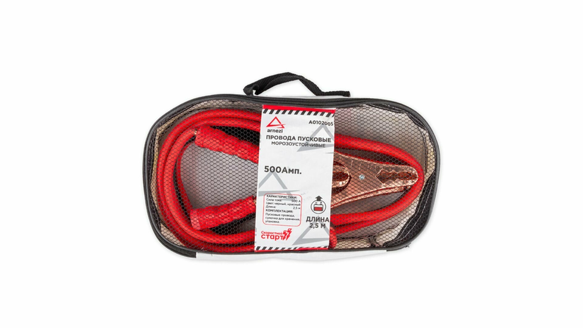 Купить ARNEZI A0102009 Провода прикуривания АКБ 500А 2,5 м в сумке (12В/24В, d=9 мм 212жил, силиконовые, -40С) ARNEZI A0102009