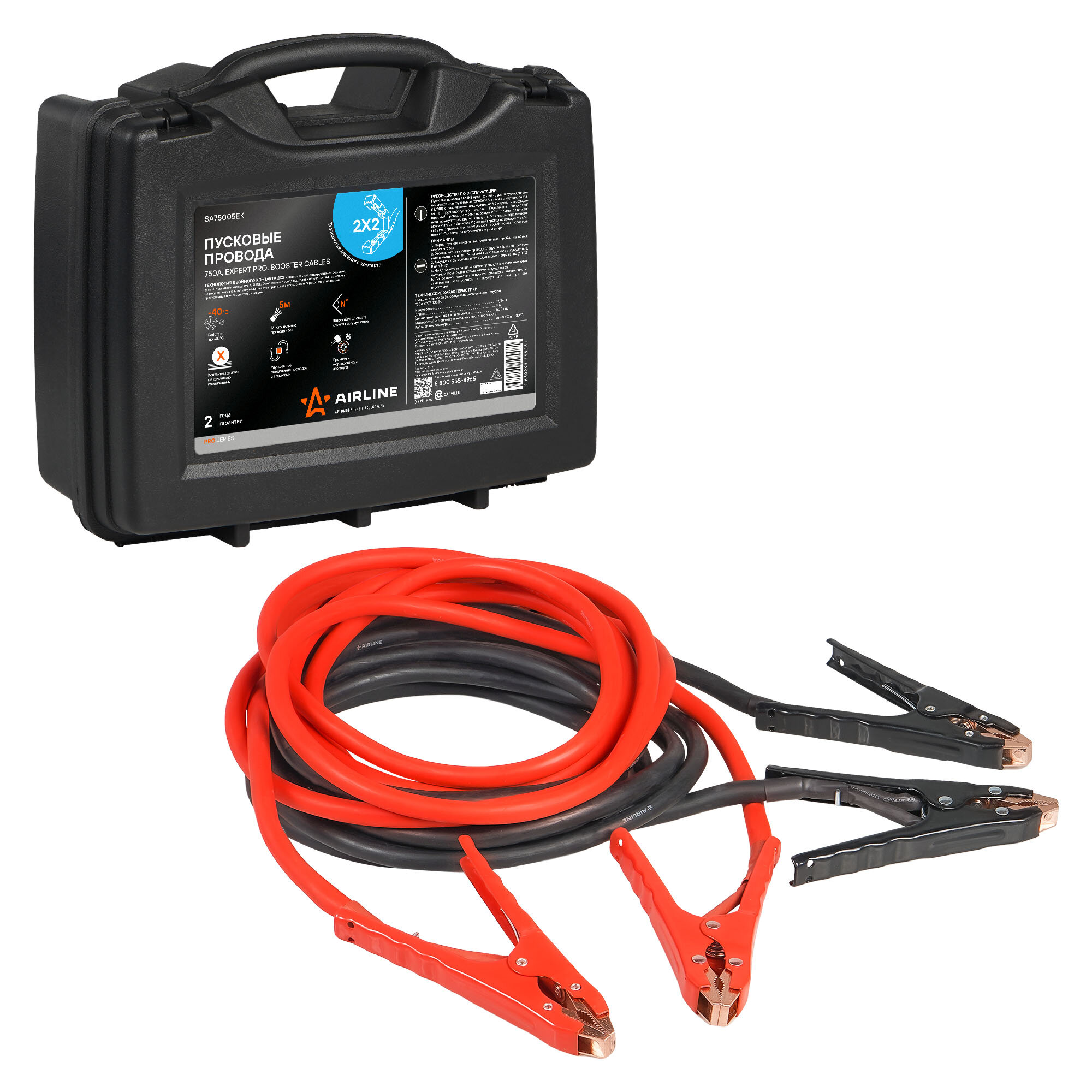 Провода прикуривания 750А EXPERT PRO (5м, 12/24В, кейс) SA75005EK AIRLINE