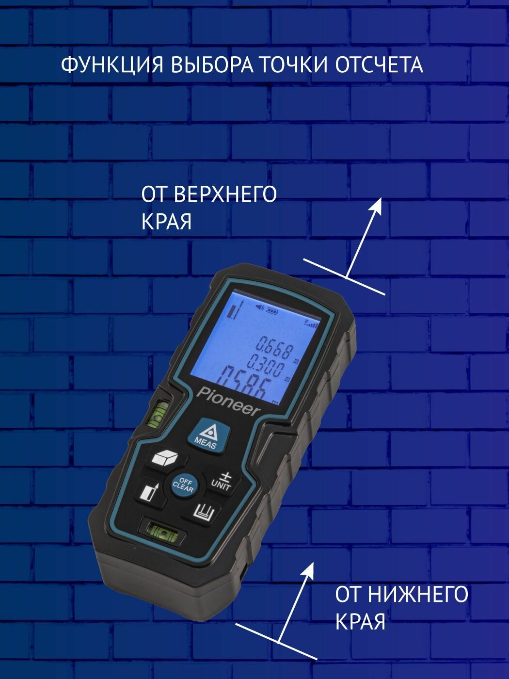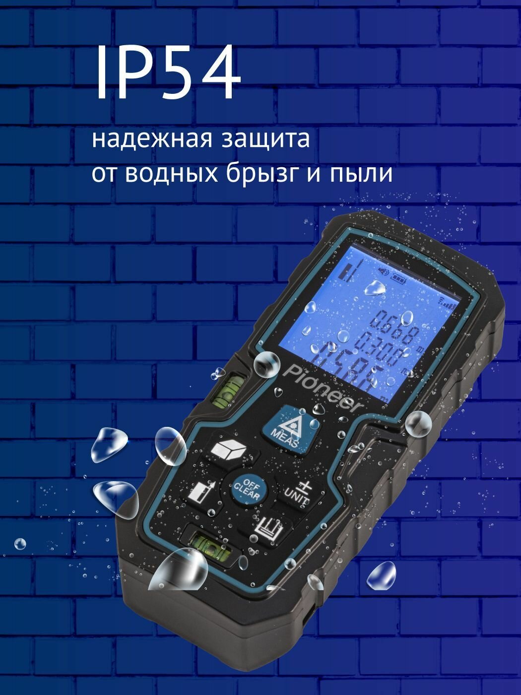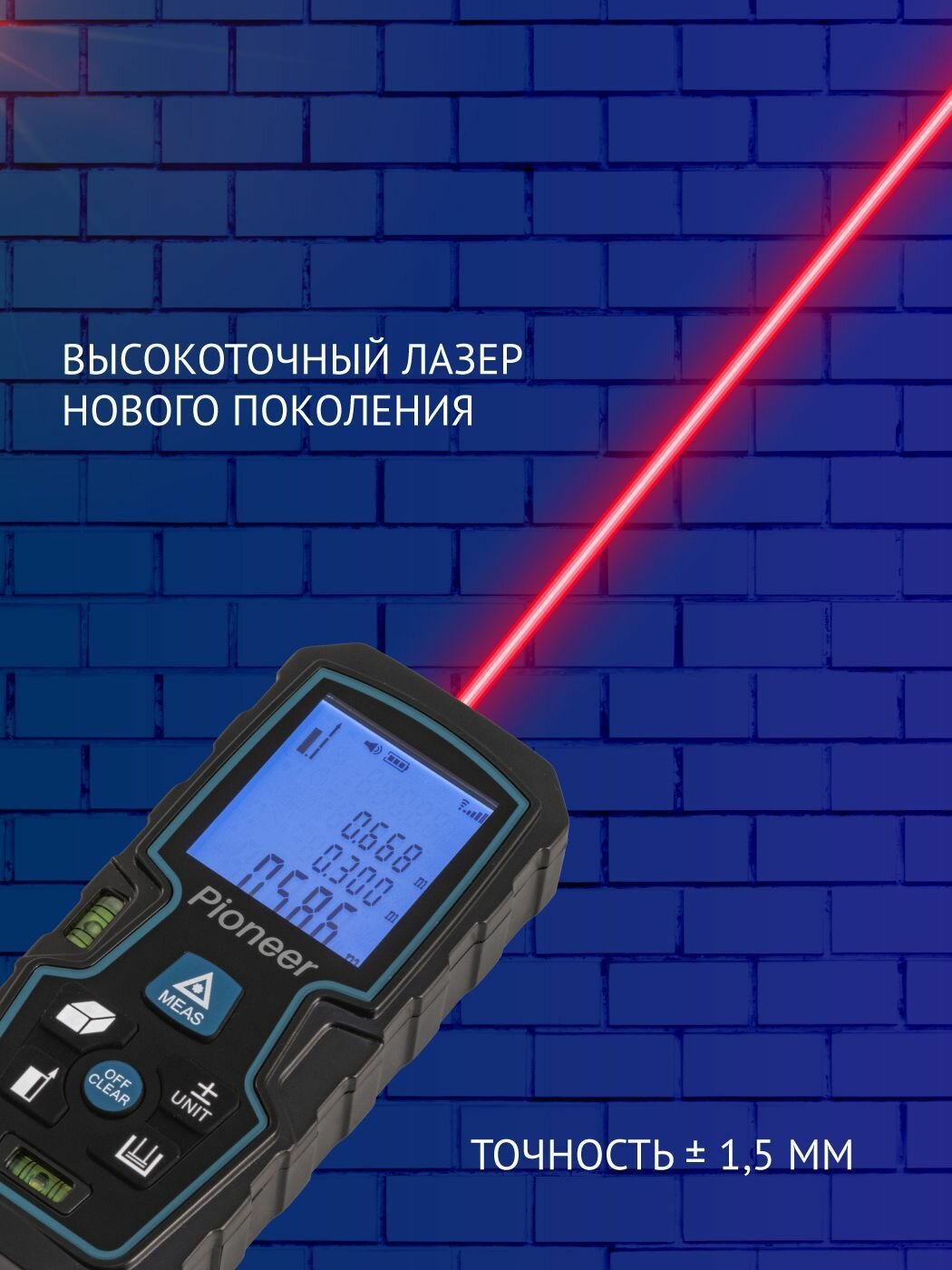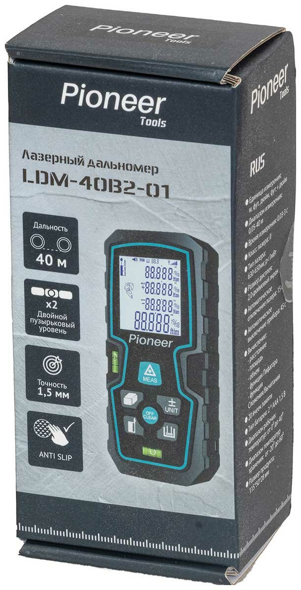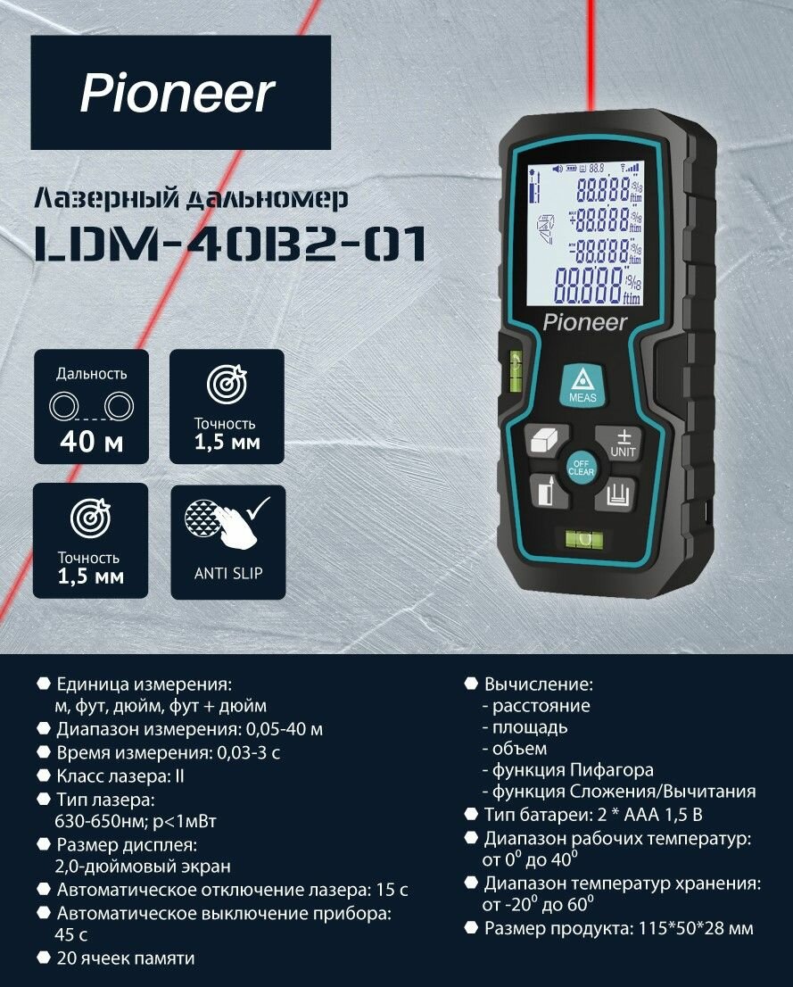Лазерный дальномер Pioneer LDM-40B2-01, до 40 метров, со встроенным уровнем