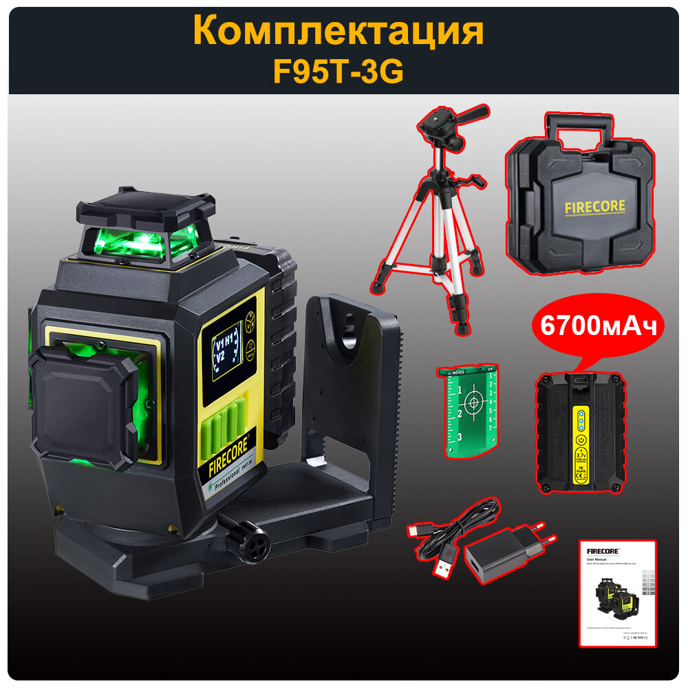 Лазерный уровень Firecore F95T-3G , 3D ,12 лучей , Дисплей, Аккумулятор 3.7V 6700 мАч , в кейсе