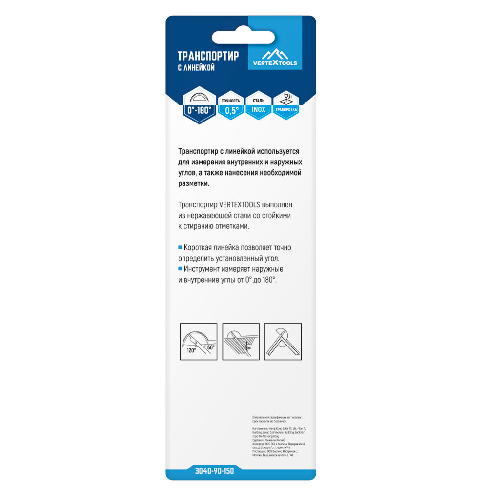| Подробная комплектация | Транспортир линейка VertexTools |