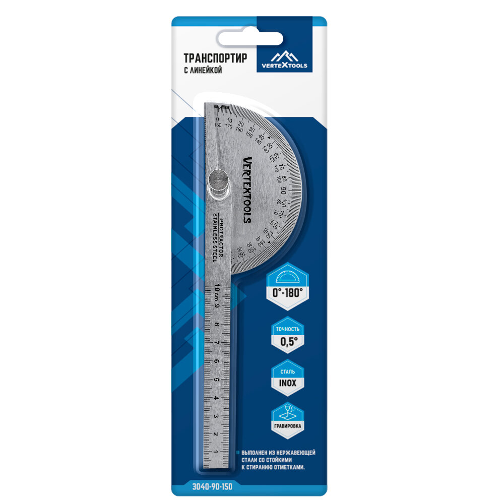 vertextools транспортир С линейкой 90x150мм 3040-90-150