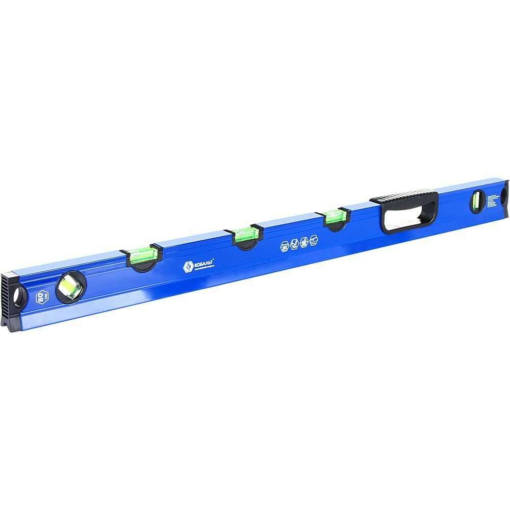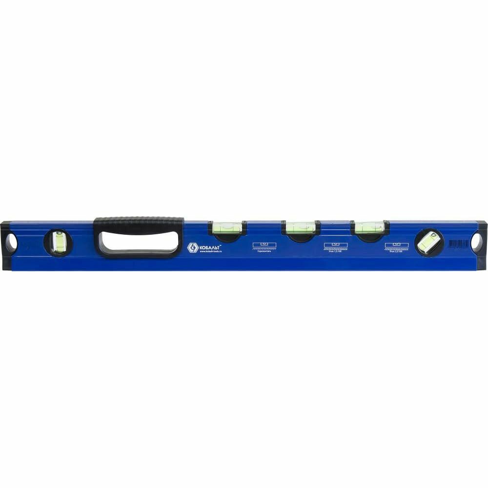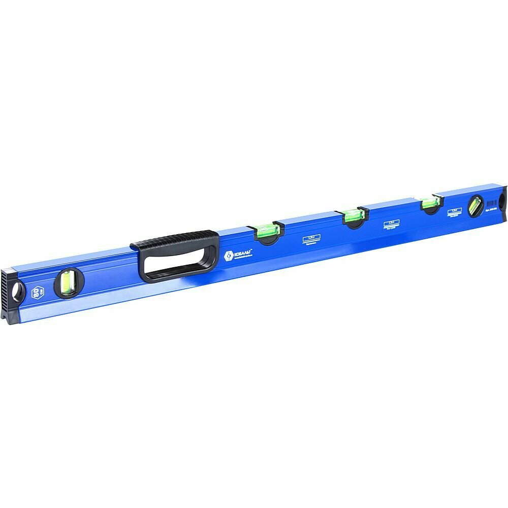 Уровень строительный кобальт 800 мм, профиль 28 x 60 мм, 5 глазков, 1 ручка, V-паз, интересное: