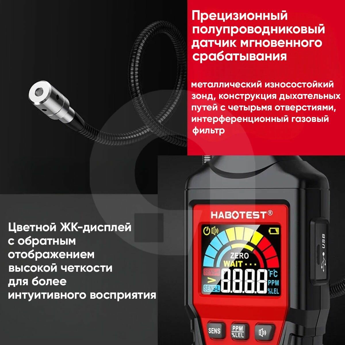 Газоанализатор HABOTEST HT601A, 50-50000PPM/0-100% LEL, 9 газов, гибкий зонд интересное: