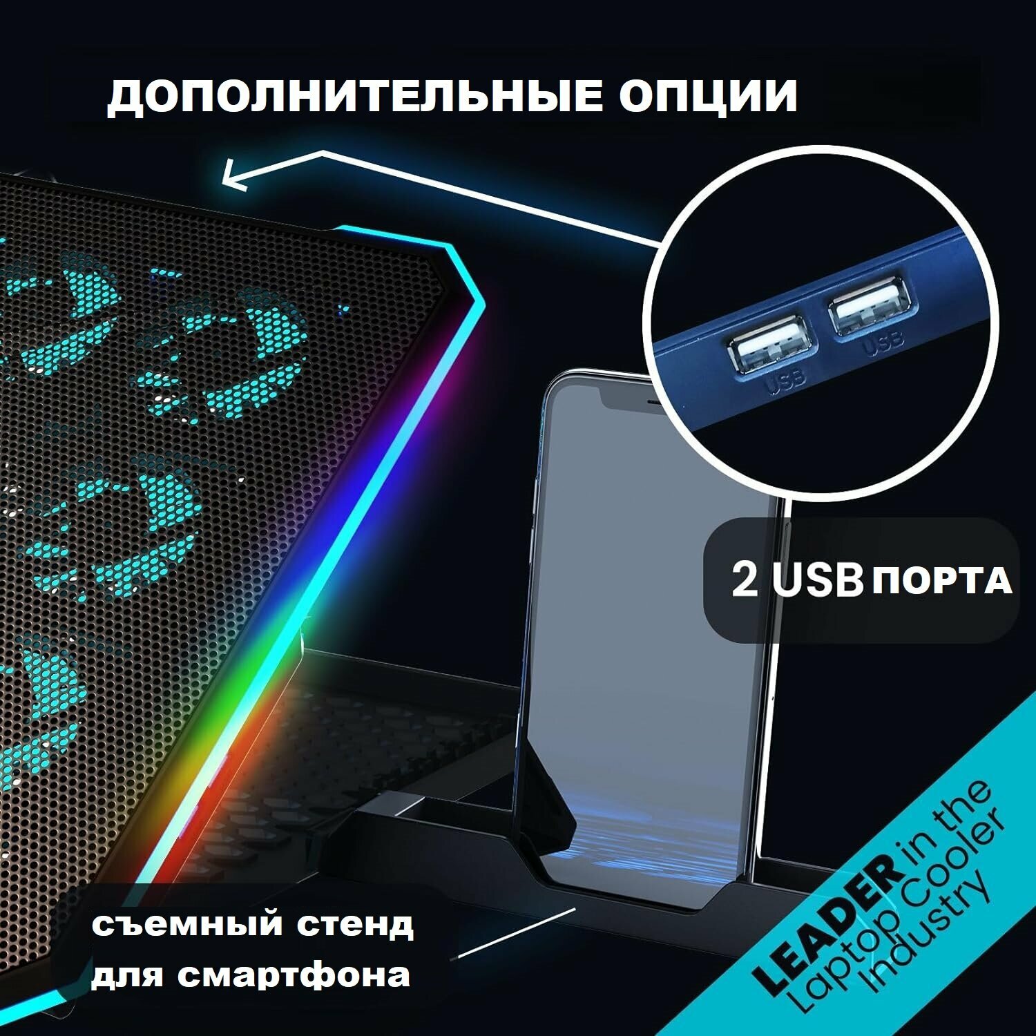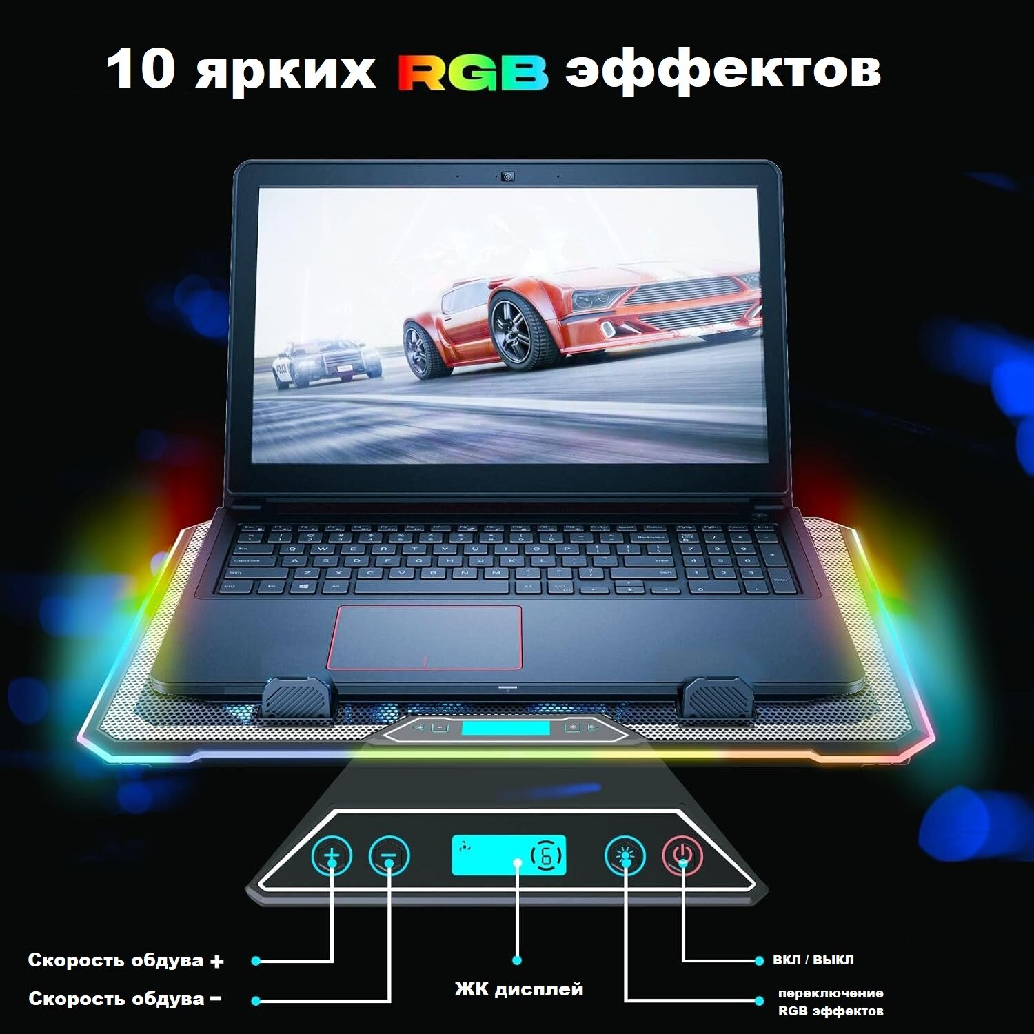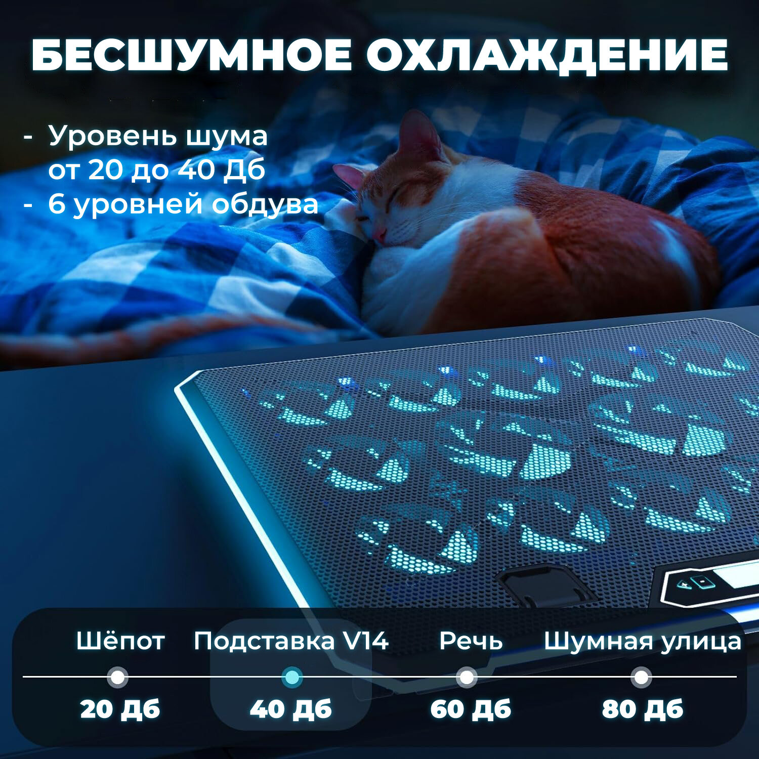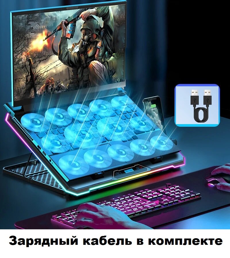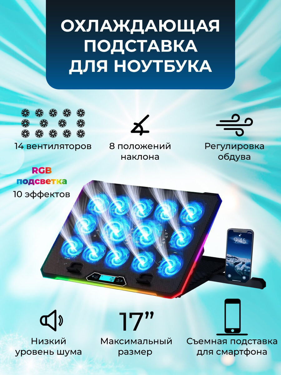 Охлаждающая подставка для ноутбука до 17", 14 вентиляторов, подставка для смартфона, RGB интересное: