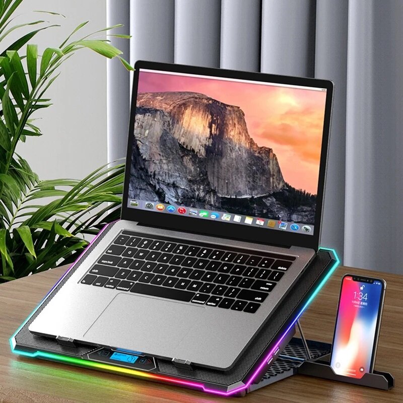 Купить Охлаждающая подставка для ноутбука до 17", 14 вентиляторов, подставка для смартфона, RGB