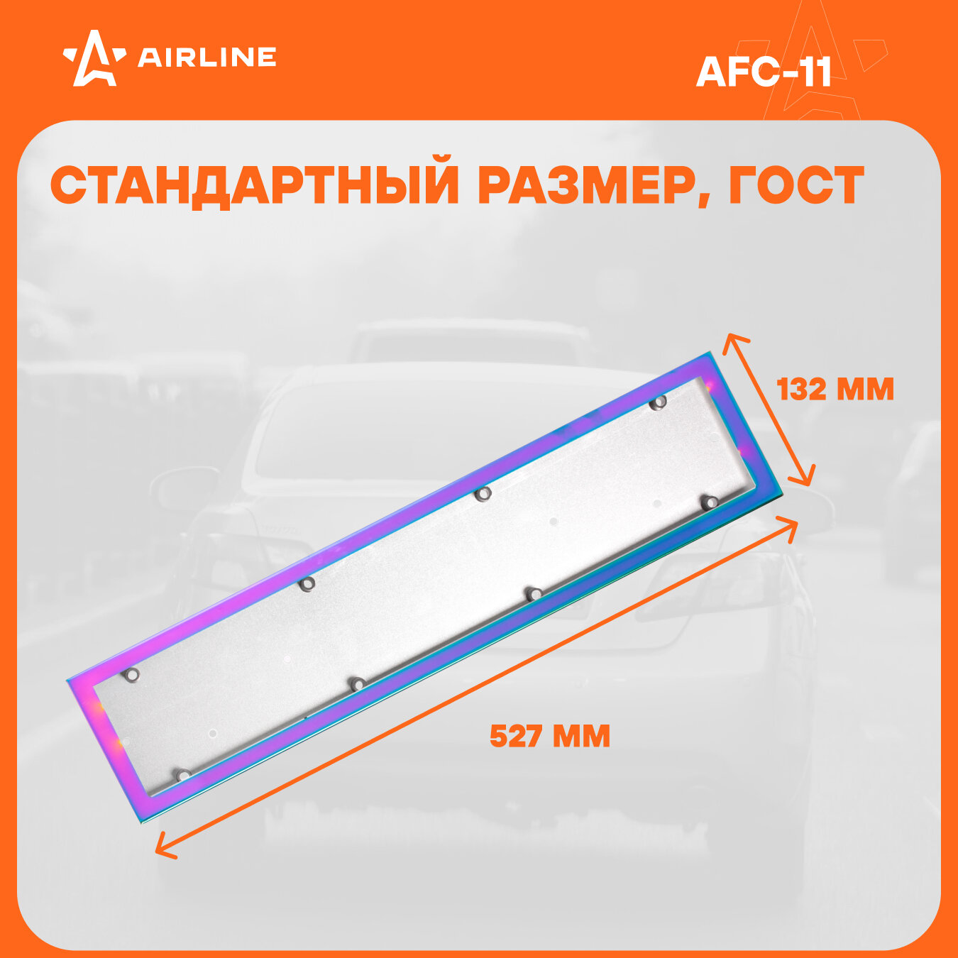 Рамка под номерной знак, антивандальная, металл, гальваника, разноцветная (AFC-11) AIRLINE