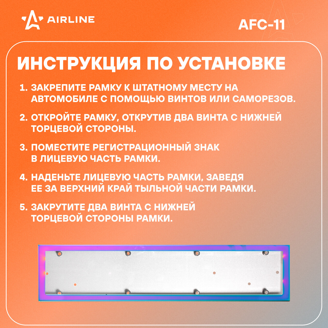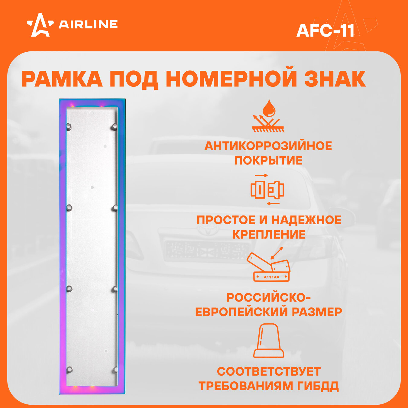 Рамка Под Номерной Знак, Антивандальная, Металл, Гальваника, Разноцветная (Afc-11) AIRLINE арт. AFC-11