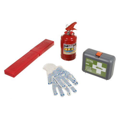 Набор автомобилиста Техосмотр ЭКО (Знак+Аптечка+Огнетушитель ОП1+Перчатки) шт STVOL SNA01