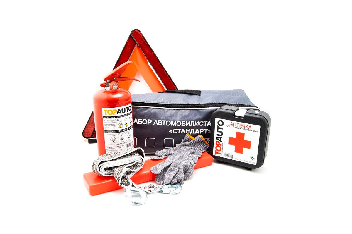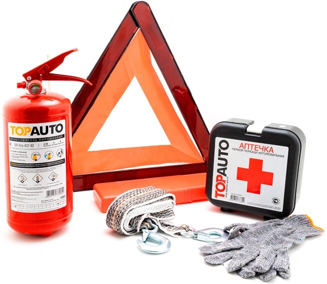 Набор Автомобилиста "Топ Авто" Стандарт 1 (Огнетушитель, Трос, Аптечка По Приказу, Знак Гост, Перчат TOP AUTO арт. НАС1