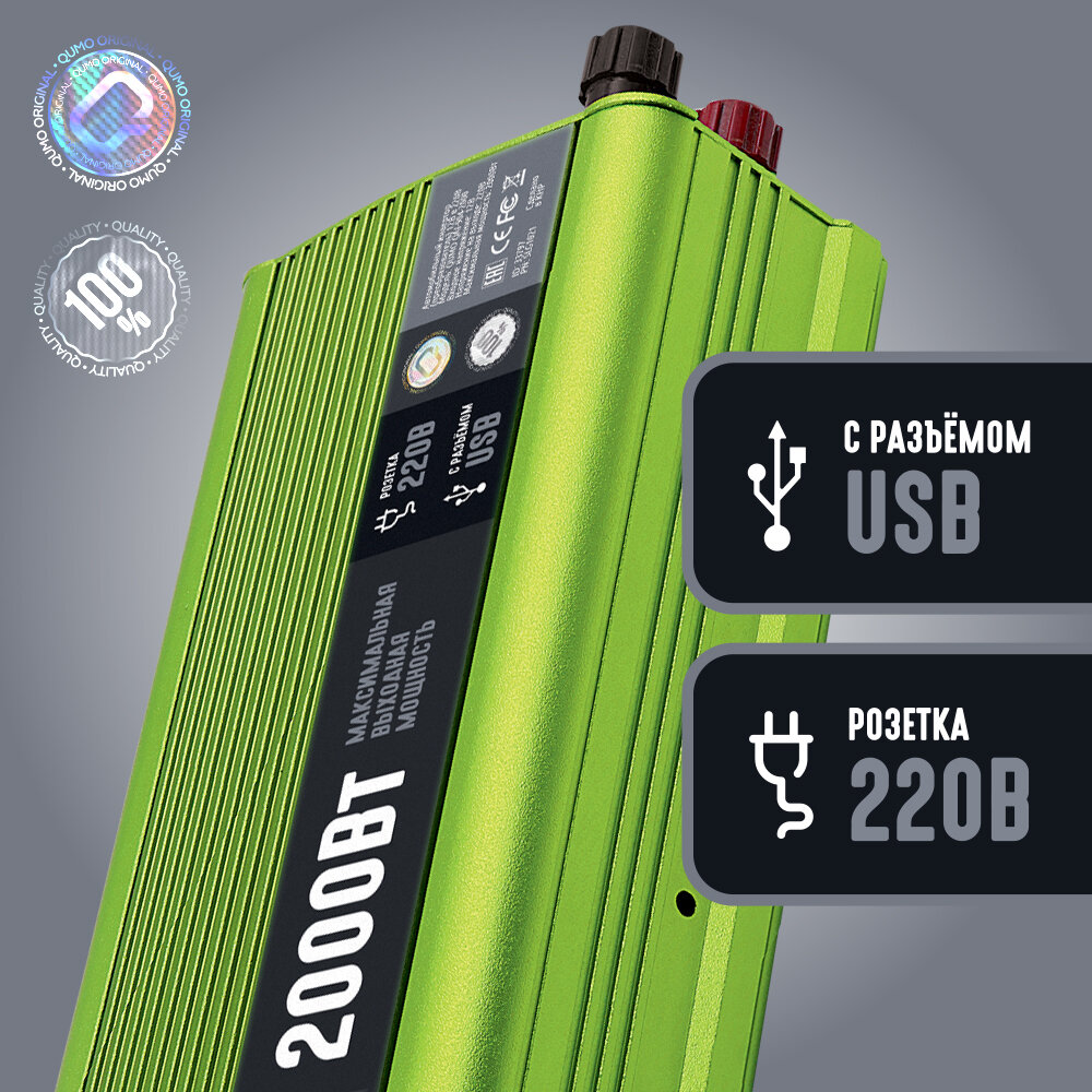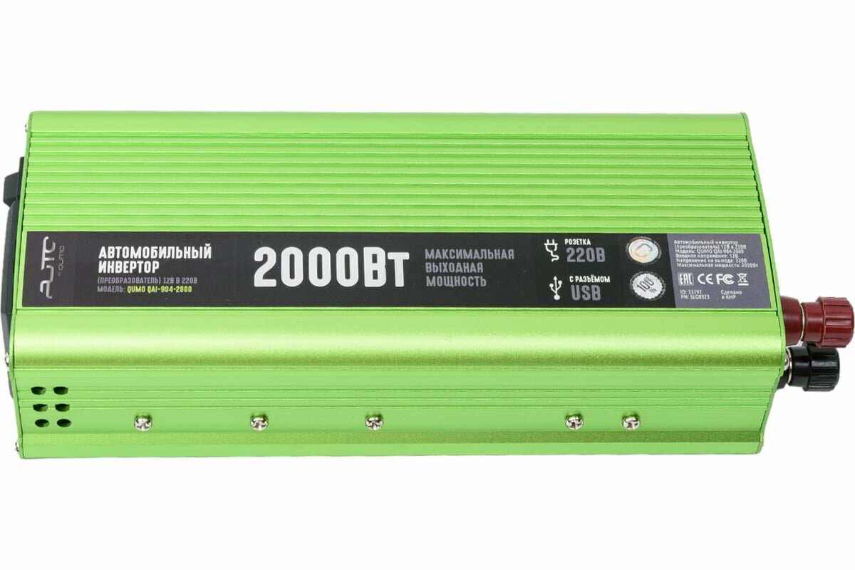 QUMO Автомобильный инвертор преобразователь постоянного тока 12В в переменный ток 220В, модель QAI-904-2000 Inv 004 , максимальная выходная мощность 2000Вт 33797 интересное: