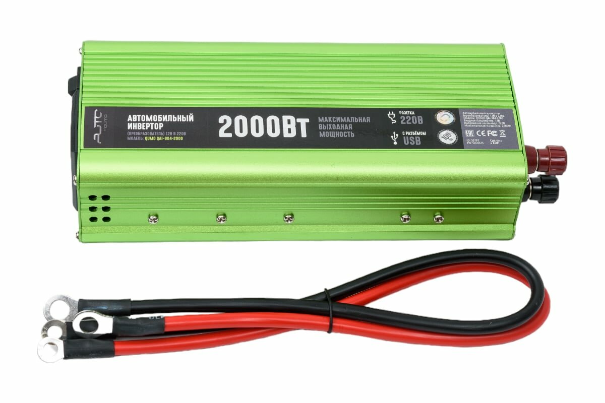 Автомобильный инвертор (преобразователь) постоянного тока 12В в переменный ток 220В, модель QUMO QAI-904-2000 (Inv 004), максимальная выходная мощность 2000Вт