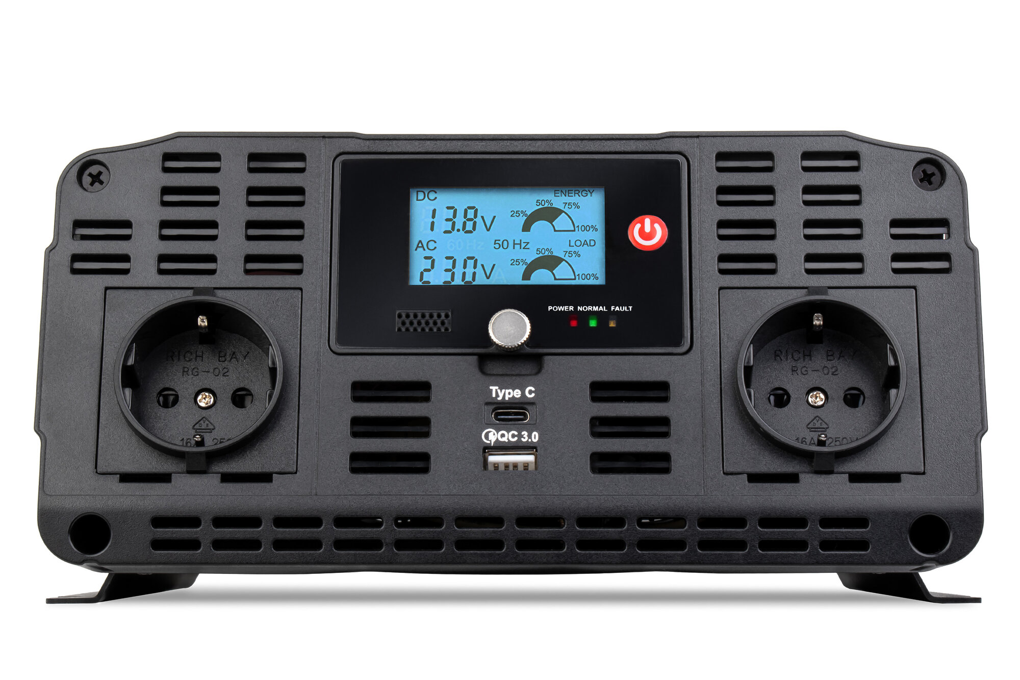 Автомобильный инвертор 3000W, 2 розетки, Type-C PD, USB QC, LCD экран (TopON TOP-PI3000)