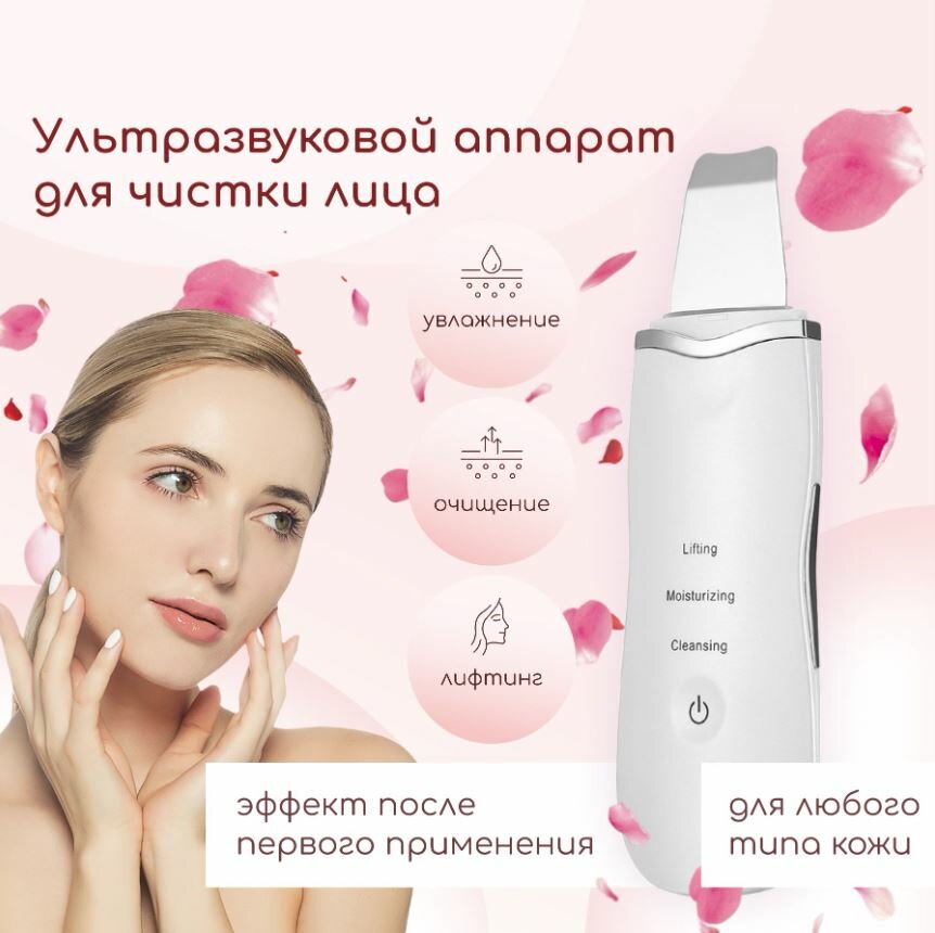 Аппарат для чистки/Ультразвуковой/ Лифтинг/ Разглаживание морщин/Устранение черных точек/Массаж кожи/ Белый интересное: