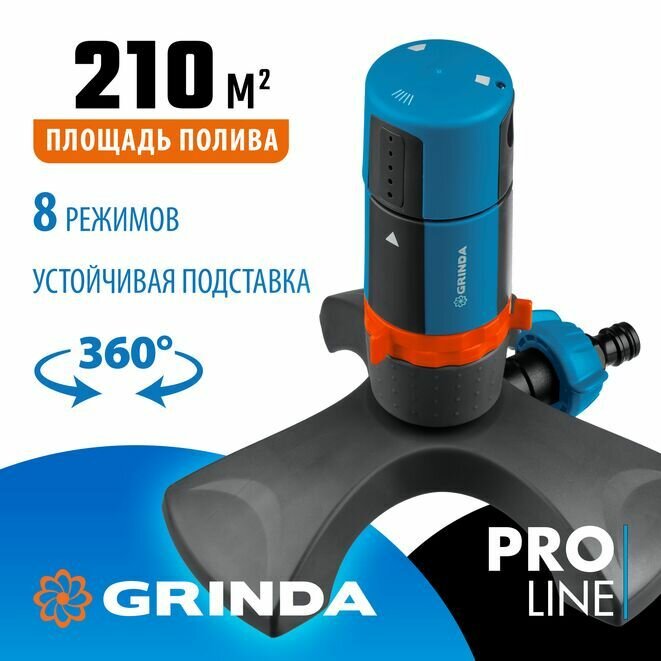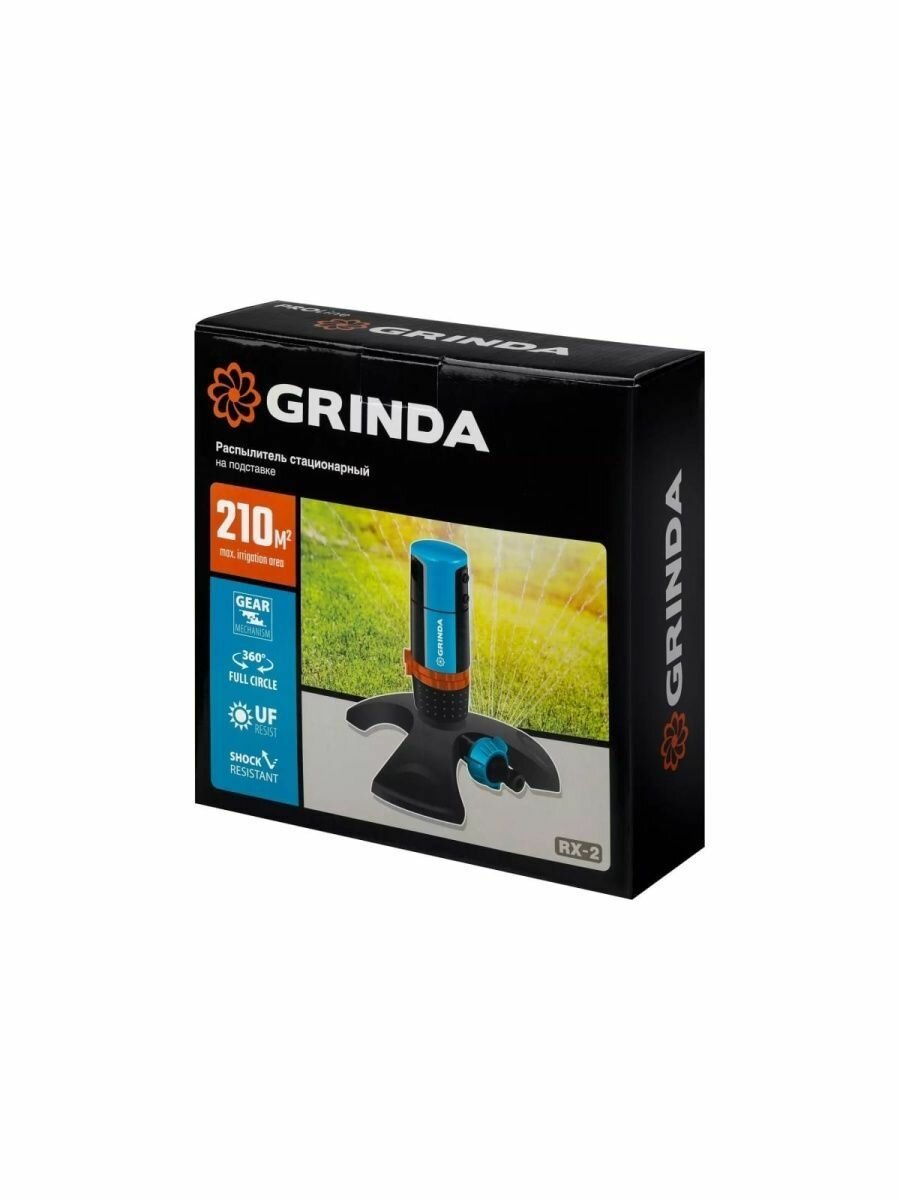 Полив, на подставке, распылитель стационарный, пластиковый, с шестерённой передачей GRINDA PROLine RX-2, 210 м2