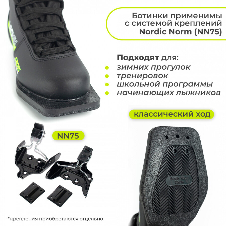 Купить Ботинки лыжные Leomik Cross NN75, черные, размер 34