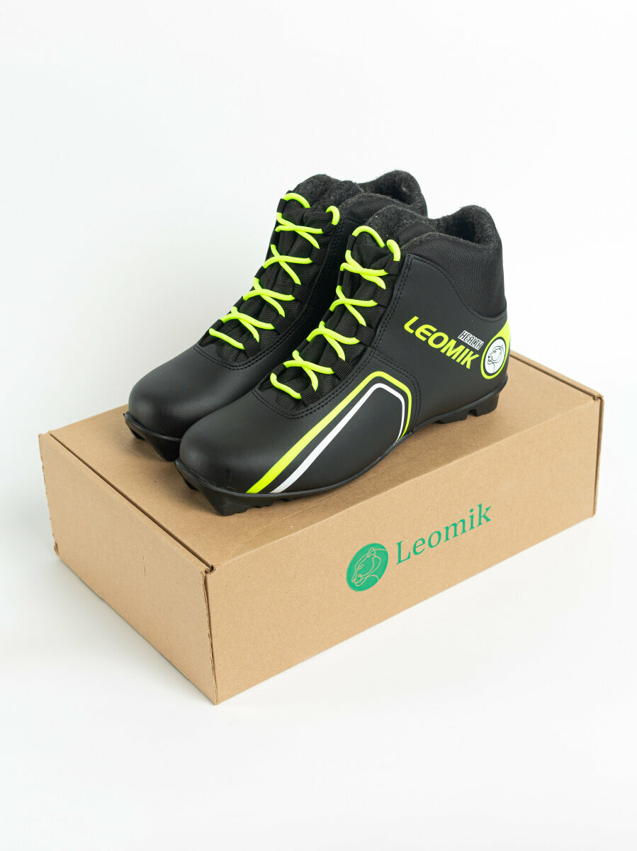 Ботинки лыжные Leomik Health (green) NNN, размер 37, черно-неоновые