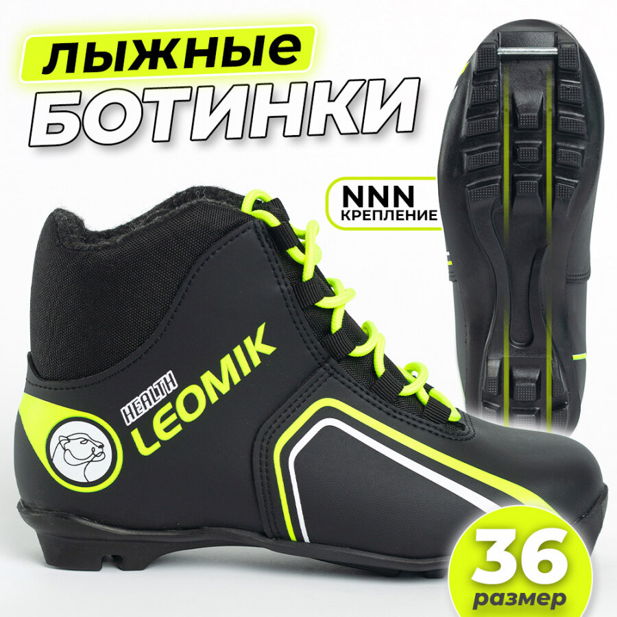 Купить Ботинки лыжные Leomik Health (green) NNN, размер 36, черно-неоновые