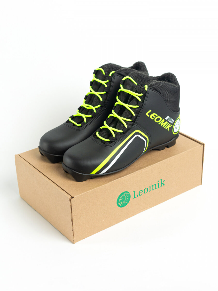 Ботинки лыжные Leomik Health (green) NNN, размер 34, черно-неоновые