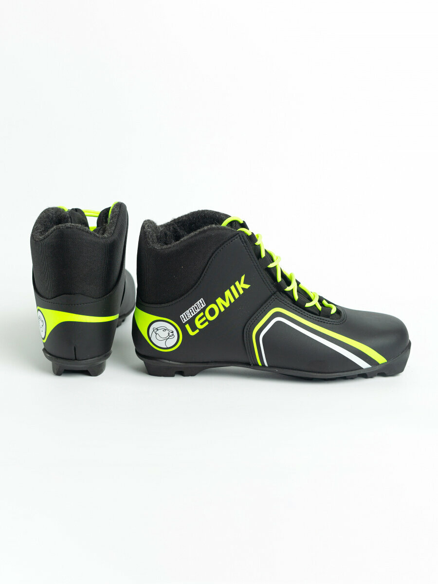 Ботинки лыжные Leomik Health (green) NNN, размер 33, черно-неоновые